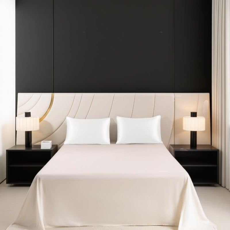 Juwenin Bedding,Luxury Satin Pillowcase with Zipper (Silky Satin Pillow Case for Hair) Set of 2 (White, Queen(20''x29''))