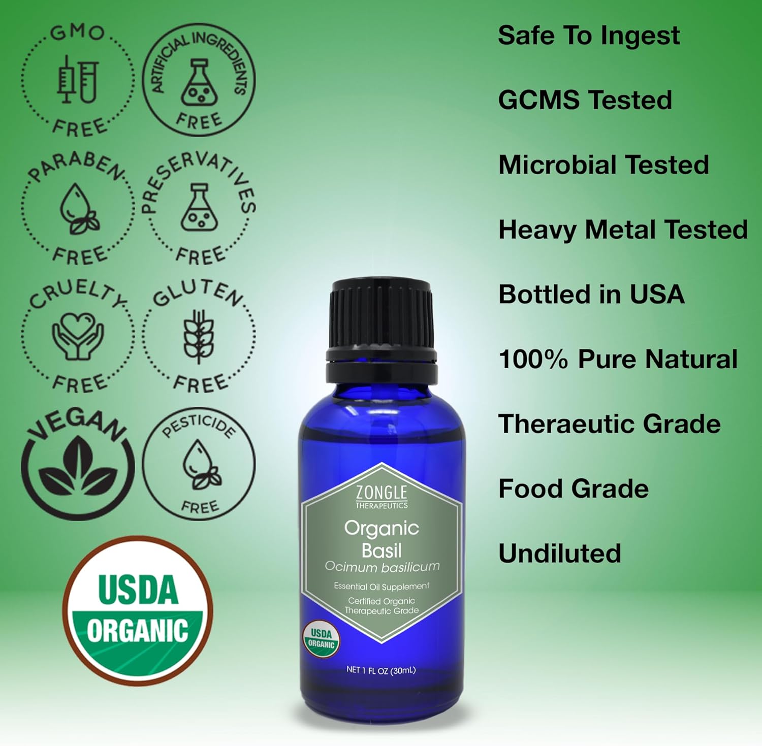 - A 100% Pure Organic Basil Essential Oil – Zongle Therapeutics Basil Essential Oil is certified organic and free from additives, making it ideal for various uses.