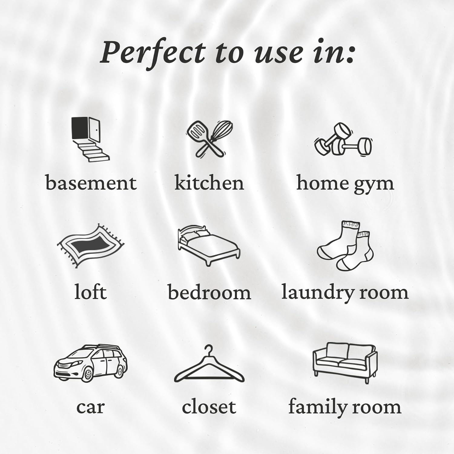 - Refill your Spray bottles and spray in any space with strong odors, like home gyms, garages, basements, kitchens, and common areas.