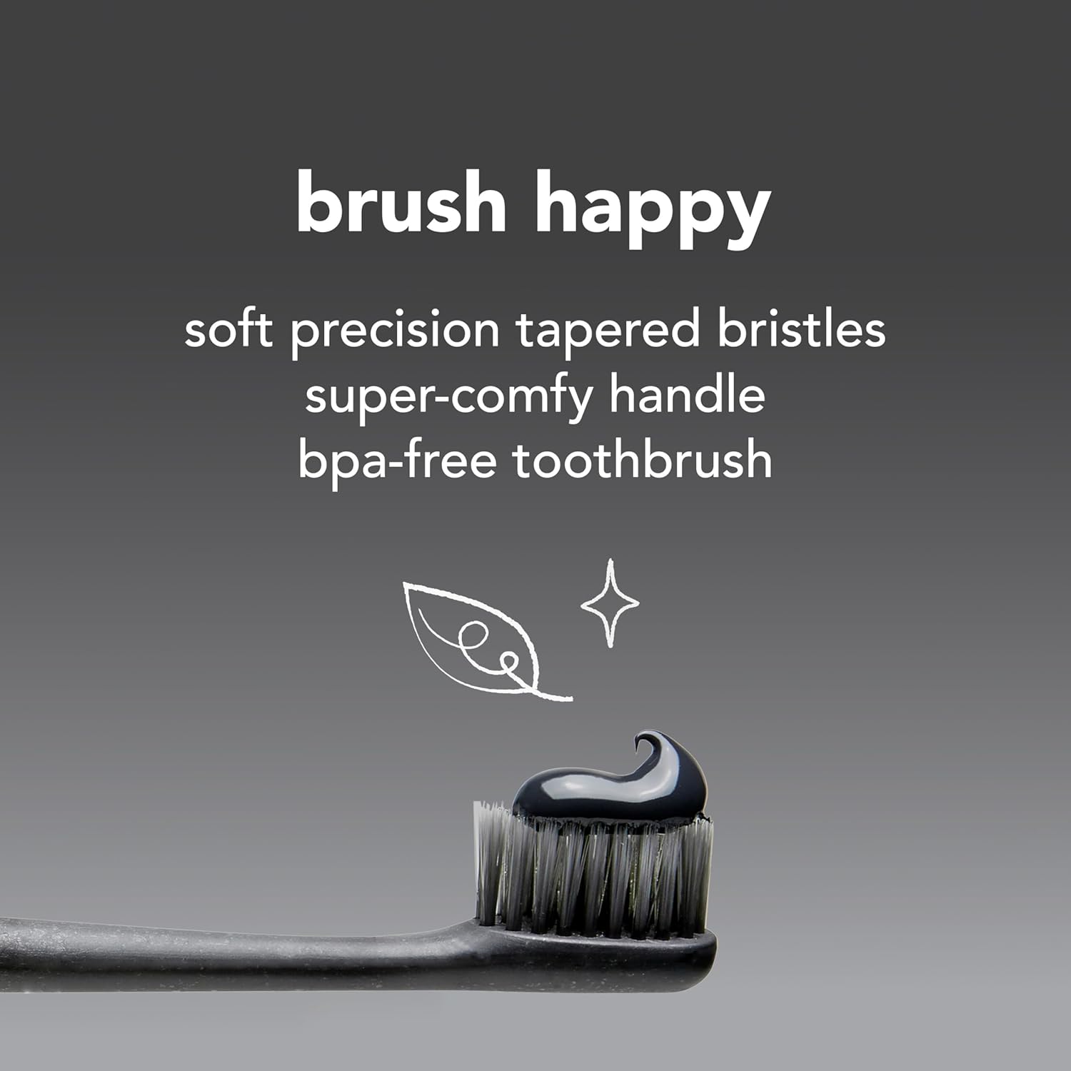 - BPA-FREE TOOTHBRUSH: This charcoal-infused soft bristle toothbrush is completely BPA-free. The soft, precision tapered charcoal bristles on this black toothbrush help polish away stains and remove pesky plaque buildup