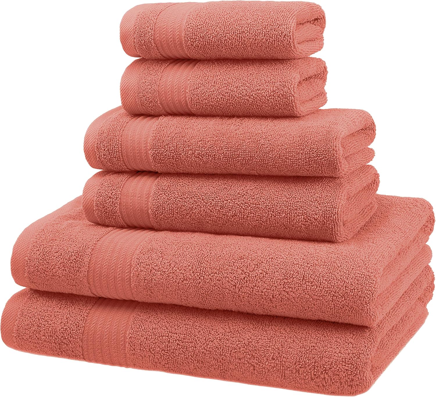 American Veteran Towel, 6 Piece Towel Set for Bathroom, 100% Cotton Turkish Bathroom Towels, 2 Bath Towels 2 Hand Towels 2 Washcloths, Coral