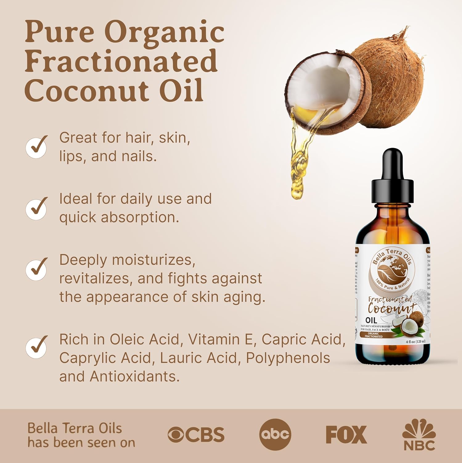 - ✔️ [Pure Indulgence]: Our Organic Fractionated coconut oil is more than just liquid coconut oil. Revered as a top-notch carrier oil and coconut oil for skin, it's nature's luxury in a bottle.
