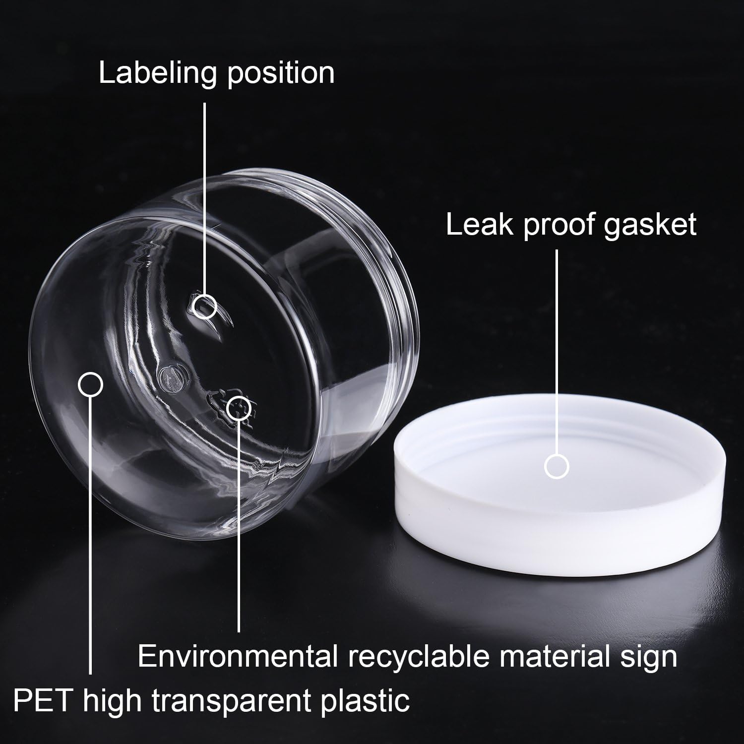 - Reliable quality: these round containers adopt good quality PET plastic, not easy to be broken; These straight-sided and wide-mouth jars allow for easy filling and removing