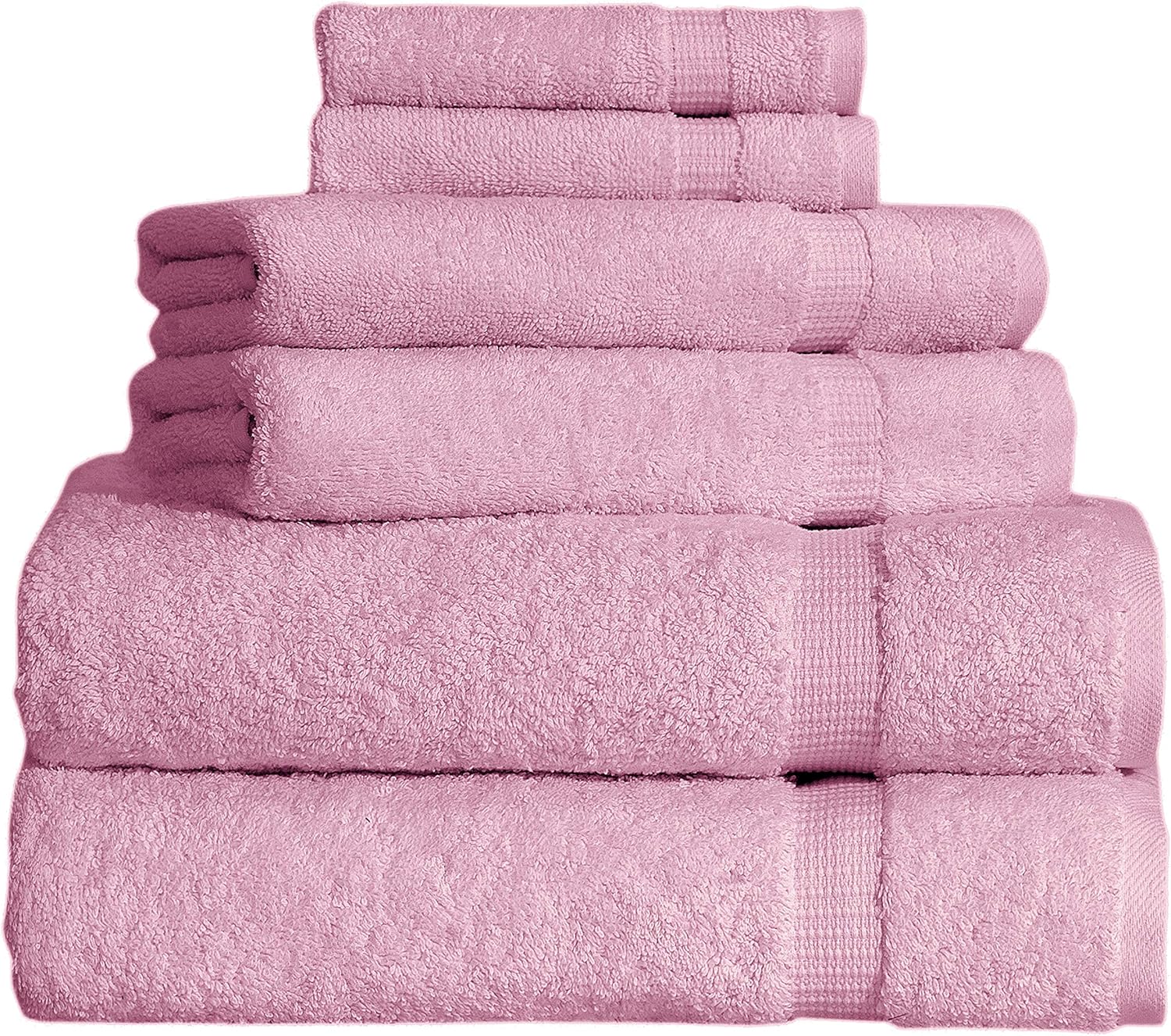 SALBAKOS 100% Turkish Cotton 6-Piece Towel Set | Heirloom Quality Hotel & Spa Collection | Ultra Soft, Super Absorbent 2 Washcloth, 2 Hand, 2 Bath Towel Sets | Made in Turkey (Rose, 6 Piece Towel Set)
