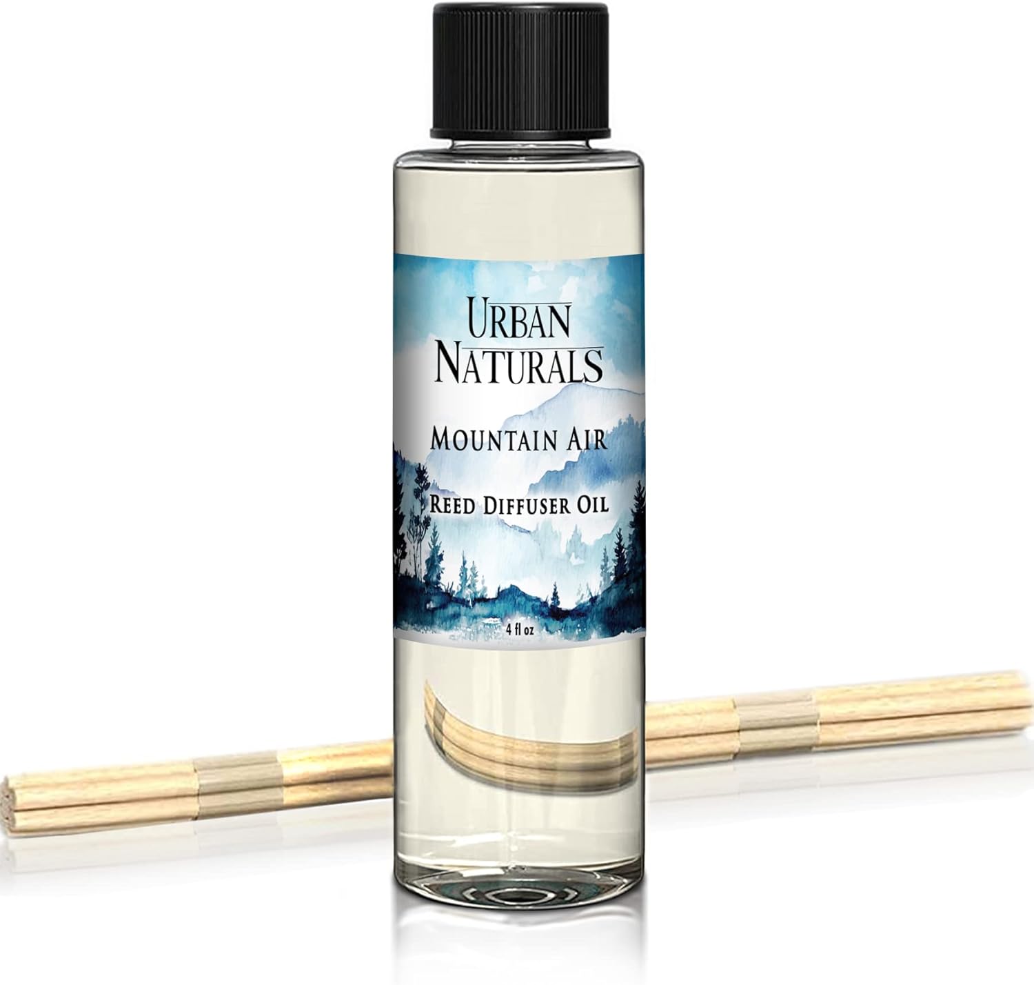 Urban Naturals Mountain Air Scented Oil Reed Diffuser Refill | Includes a Free Set of Reed Sticks! Fresh Herbs, Birch, Pear, Sage & Amber Fragrance Notes | 4 oz.