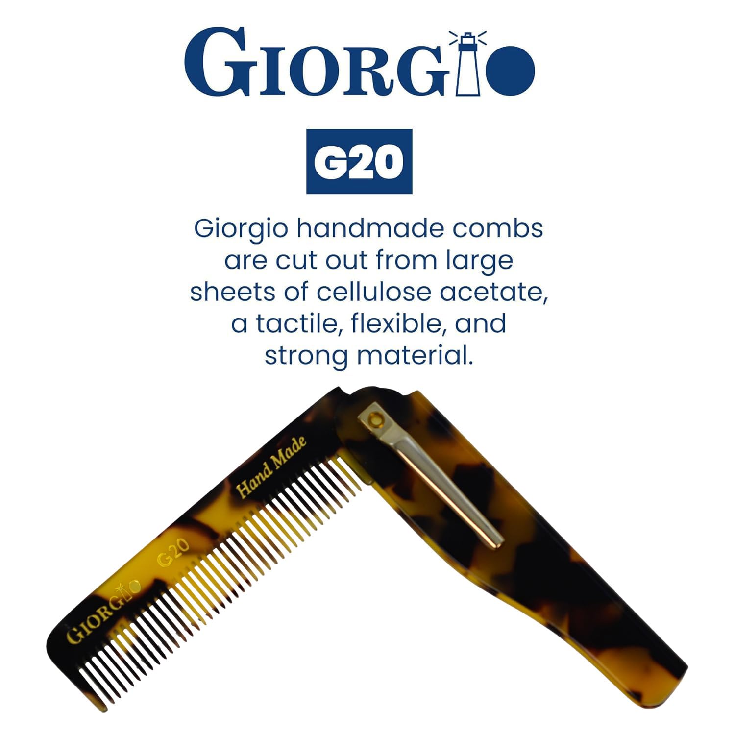 Giorgio G20 Folding Mustache and Beard Comb 6.5 Inches - Fine Tooth Styling and Travel Comb for Everyday Hair Care - Handcrafted Sawcut and Hand Polished