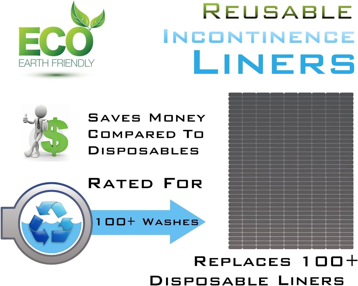 Comfort Finds Reusable Incontinence Liners - Unisex - Size 11" x 5" (Pack of 12, White)