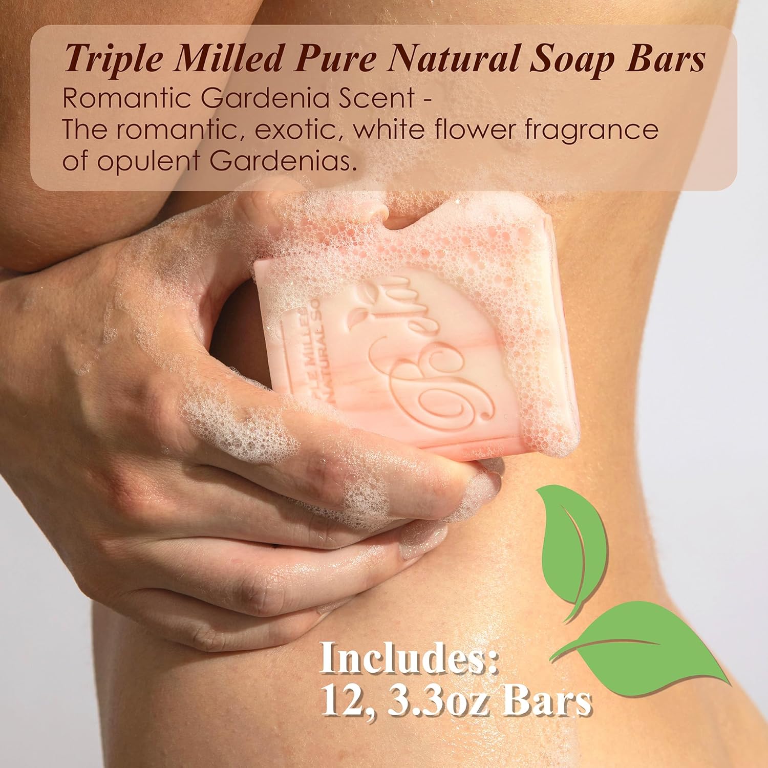 BELA Romantic Gardenia Soap 3.3 OZ Pack of 12, Long Lasting French Triple Milled Bar Soap with Organic Shea Butter Hand, Face and Body Wash Bar, Made in Australia
