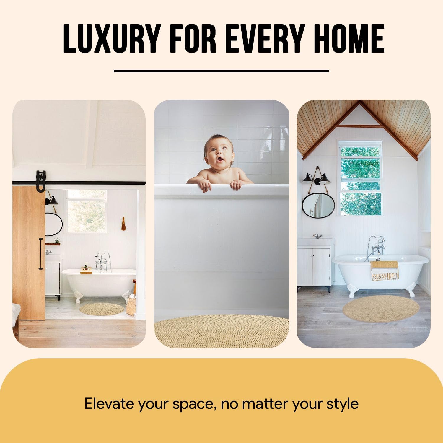 MAYSHINE Round Area Rug Set for Bathroom | Soft Plush Chenille Bath Mat, Water Absorbent Non-Slip Bathroom Rug | Washable Shag Carpet for Shower, Bedroom, or Home Décor | 36"x36" (Round) | Beige