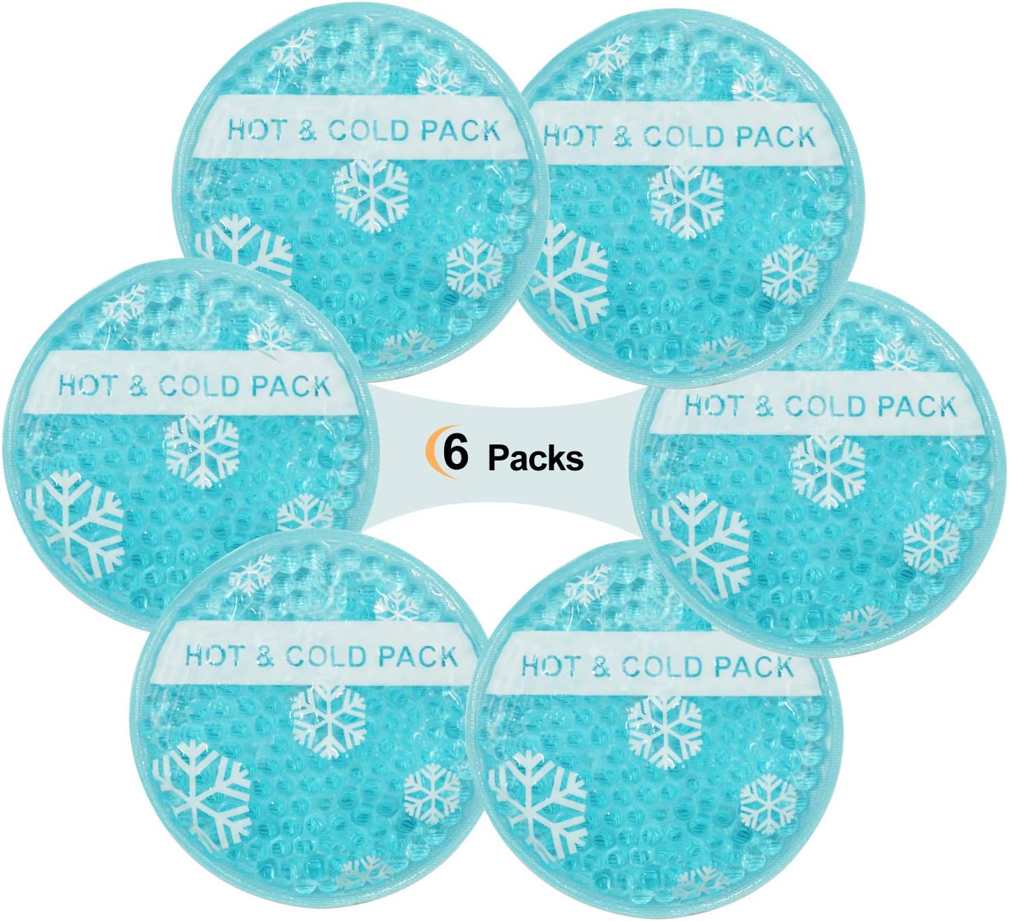 OLESILK Small Hot Cold 6 Packs, Reusable Round Gel Beads Ice Pack with Cloth Backing, Hot and Cold Therapy for Breastfeed Injury, Kids Pain Relief, Headache, Tired Eyes, Wisdom Teeth, Sinus Relief