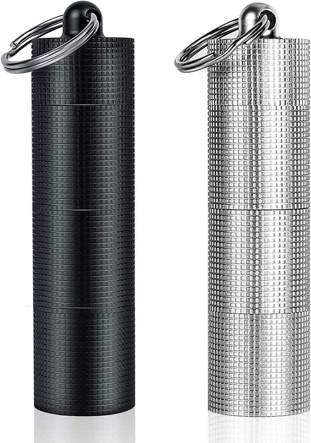 PPFISH 2 PCS Portable Daily Pill Case, 3 Compartments Aluminum Alloy Waterproof Pill Box Dispenser, Small Pocket Pill Container, Keychain Pill Fob, Travel Pill Holder for Men Women