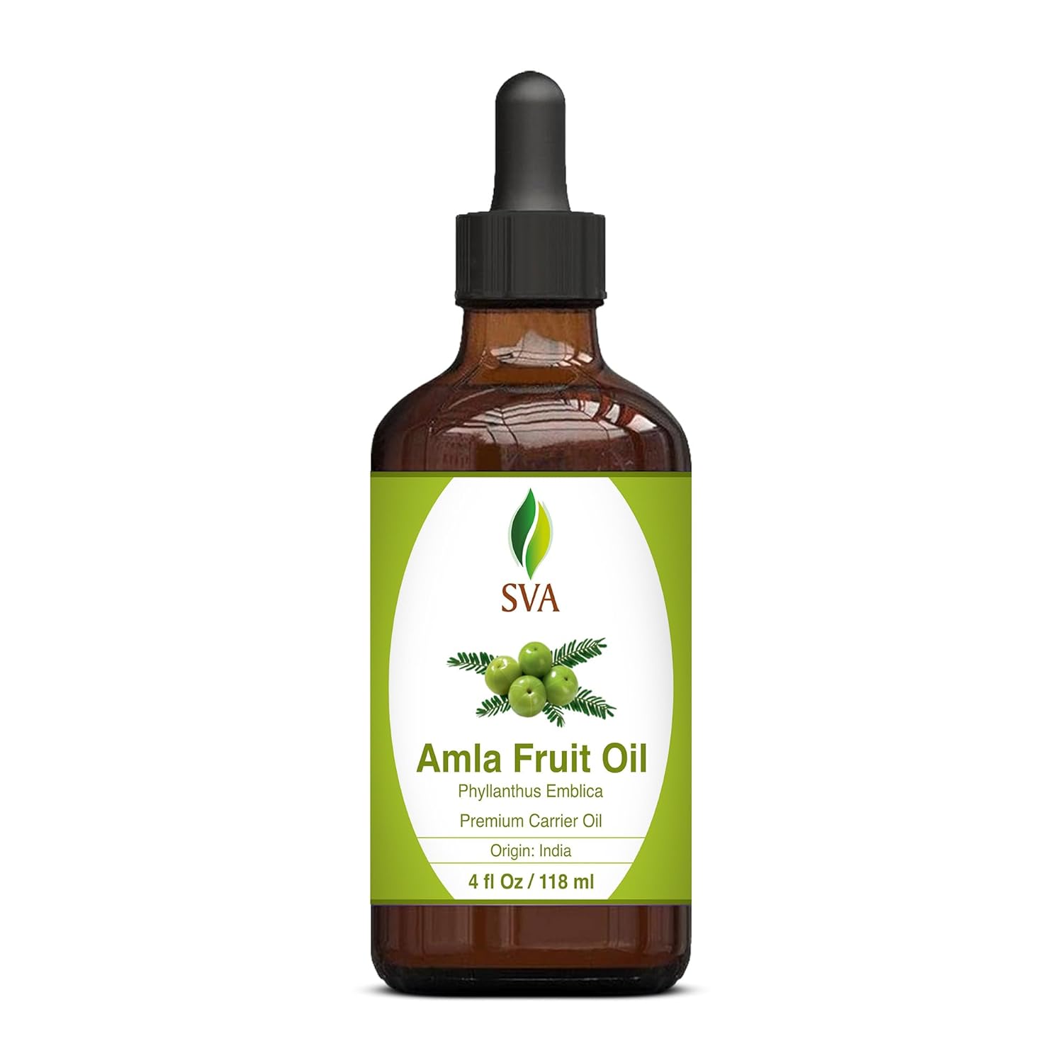 - PREMIUM QUALITY AMLA CARRIER OIL: SVA Amla Oil is obtained by cold-pressed extraction of Phyllanthus Emblica fruits. Our Amla oil is free of preservatives and comes with a dropper for easy application. It is not tested on Animals. We care for you!