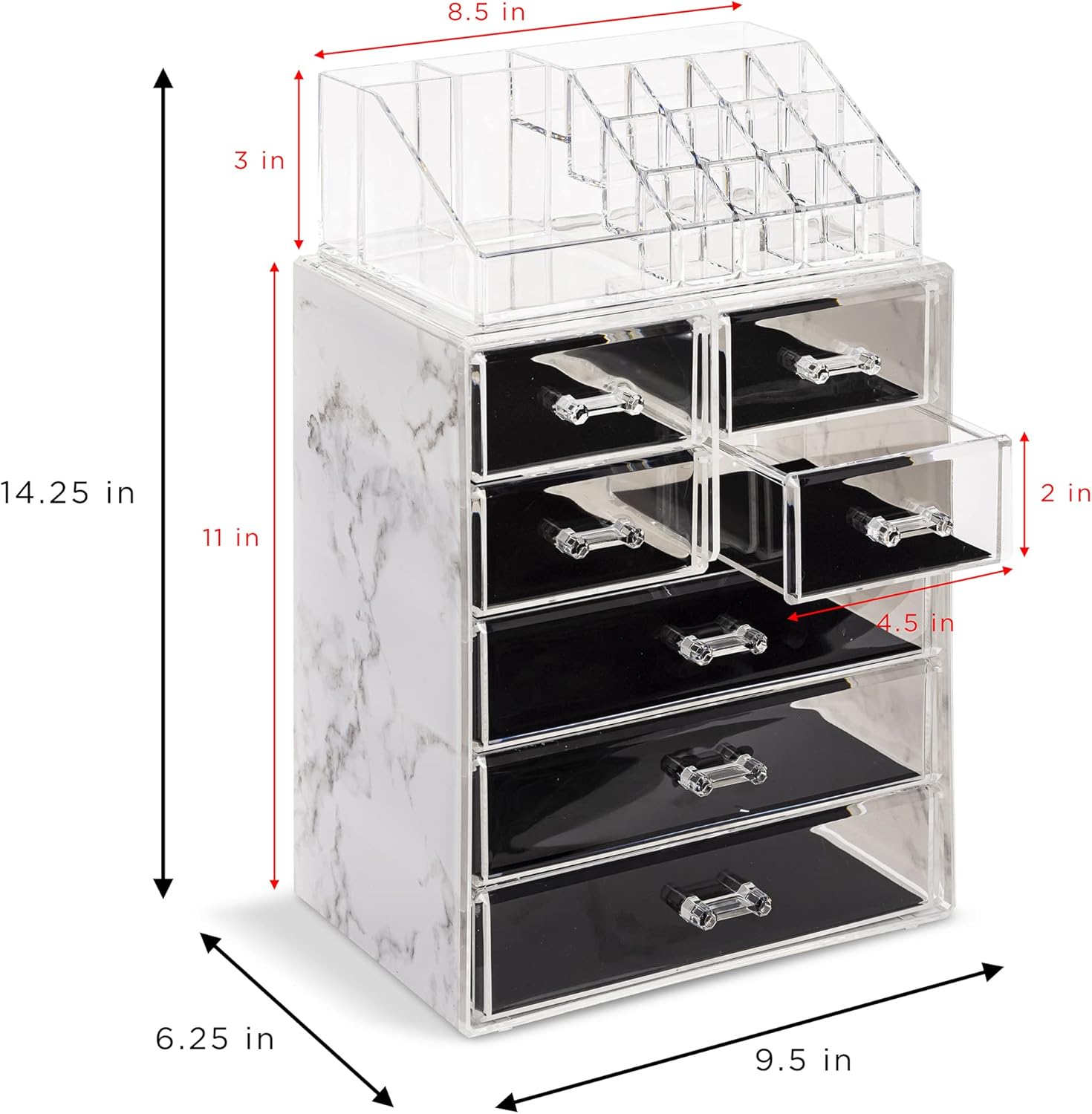Sorbus Clear Cosmetic Makeup Organizer - Make Up & Jewelry Storage, Case & Display - Spacious Design - Great Holder for Dresser, Bathroom, Vanity & Countertop (3 Large, 4 Small Drawers) [Marble Print]
