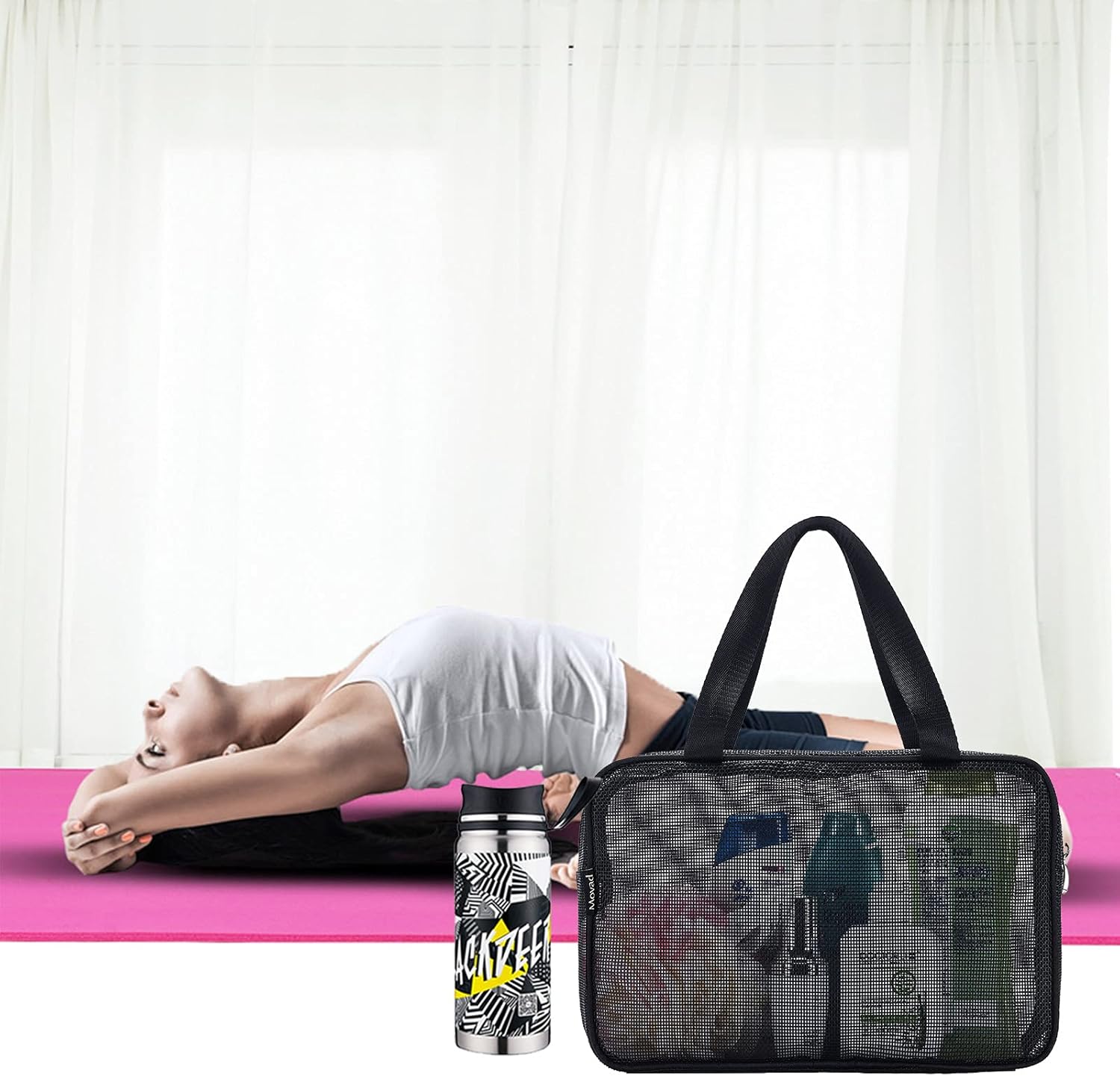Moyad Mesh Shower Caddy Portable Toiletry Tote Gym Bag for College Dorm Bathroom (Black Large)