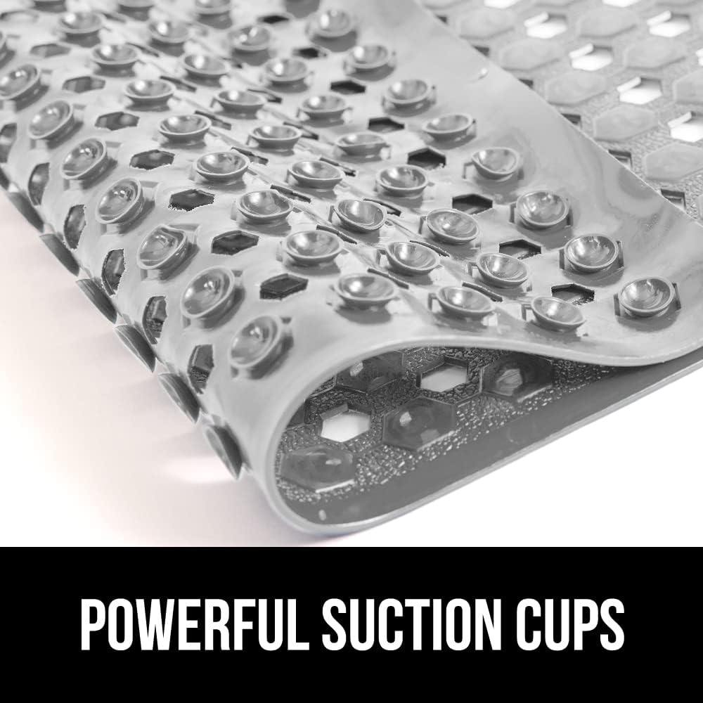GORILLA GRIP Patented Bath Tub Shower Mat, Machine Washable Bathtub Floor Liner Mats, Suction Cups and Drain Holes to Keep Tubs Clean, Soft on Feet, Bathroom Essentials, 35x16 Inch, Gray Opaque