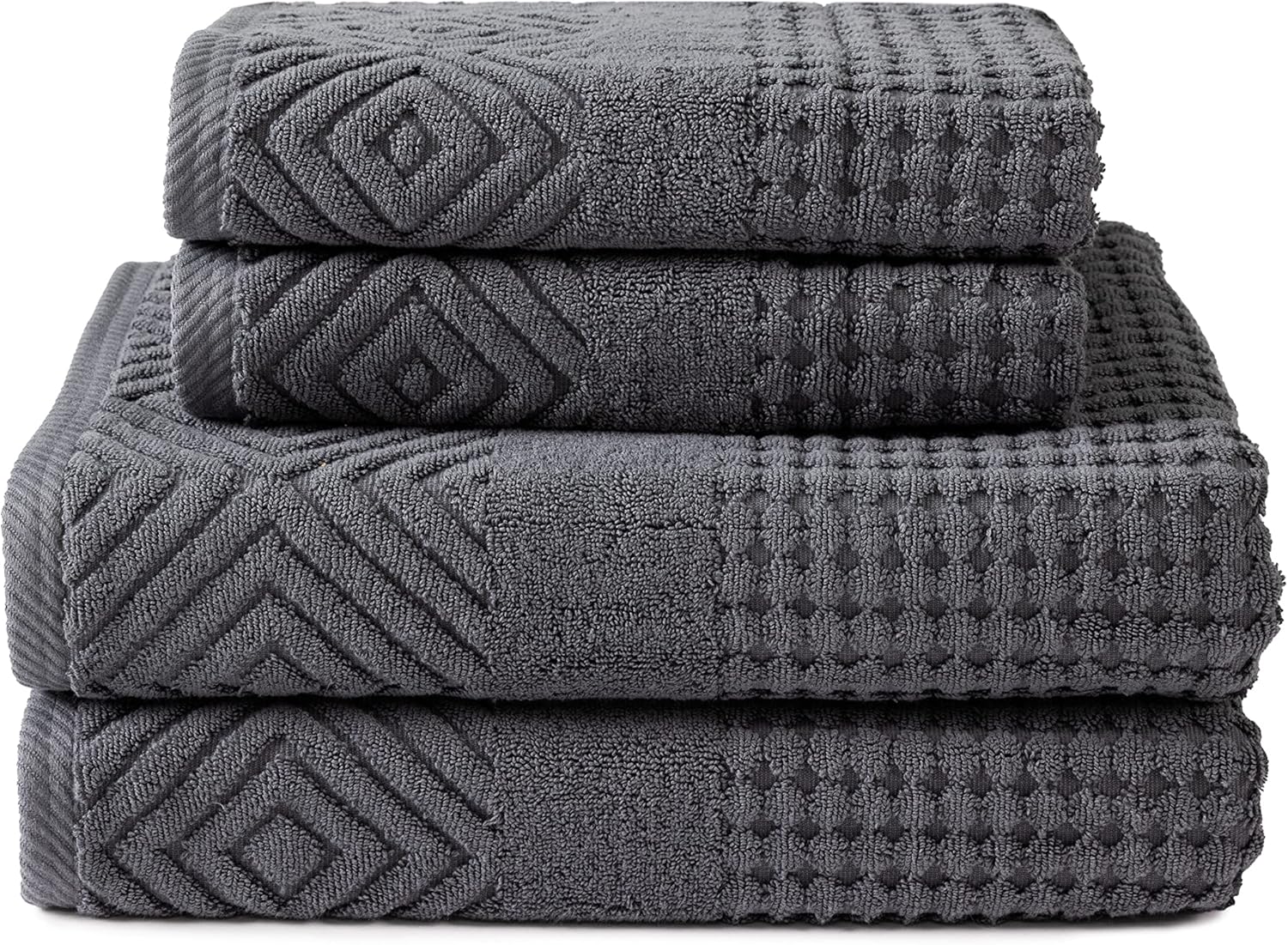 Texere 100% Organic Cotton Diamond Jacquard 700 GSM Luxury Bath Towel Sets - Ultra Soft and Absorbent Hotel and Spa Quality (Diamond, Charcoal, 2 Bath & 2 Hand Towels)