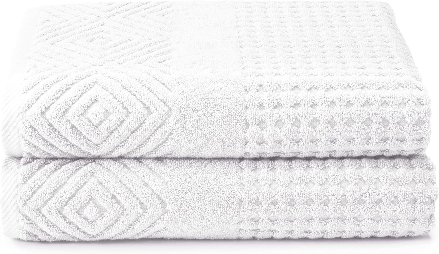 Texere 100% Organic Cotton Diamond Jacquard 700 GSM Luxury Bath Towel Sets - Ultra Soft and Absorbent Hotel and Spa Quality (Diamond, Bright White, 2 Bath Towels)