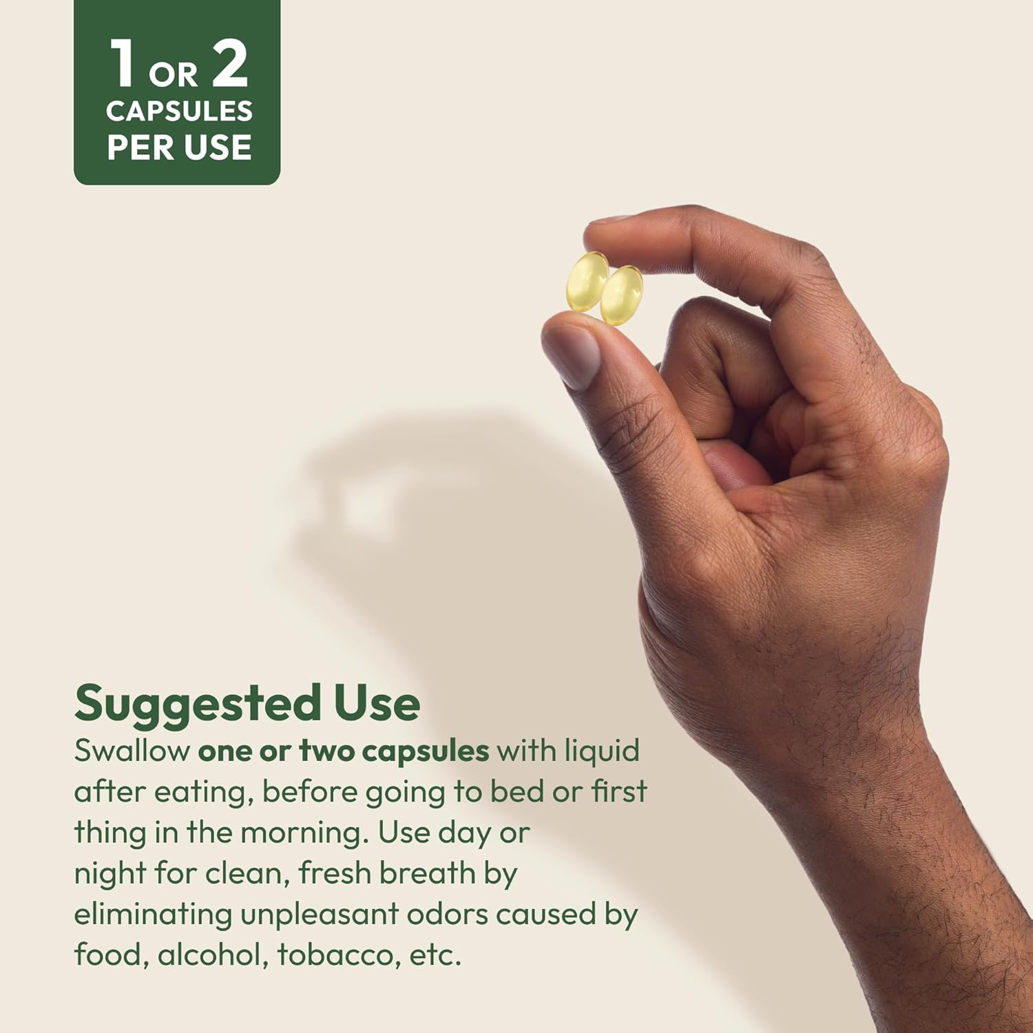 - Alternative breath solution to help combat the most frequently overlooked source of bad breath - Provides natural breath fresheners which work within the digestive system to help eliminate offensive odors from garlic, onions, alcohol, smoking, morning breath and more. Mother Nature's most effective internal breath freshener to naturally help neutralize offensive odors originating from the stomach and GI tract.