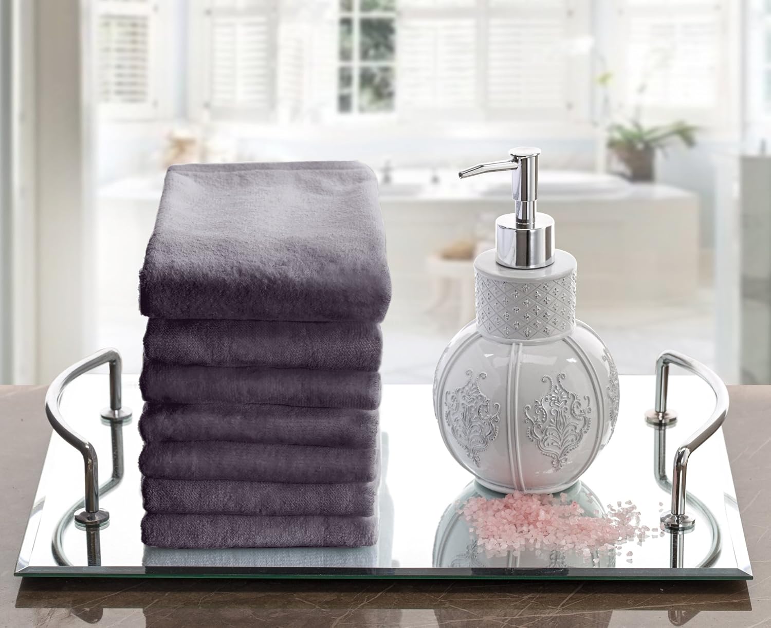 Creative Scents Cotton Fingertip Towels Set - 4 Pack - 11 x 18 Inches Decorative Small Extra-Absorbent and Soft Terry Towel for Bathroom - Powder Room, Guest and Housewarming Gift (Grey)