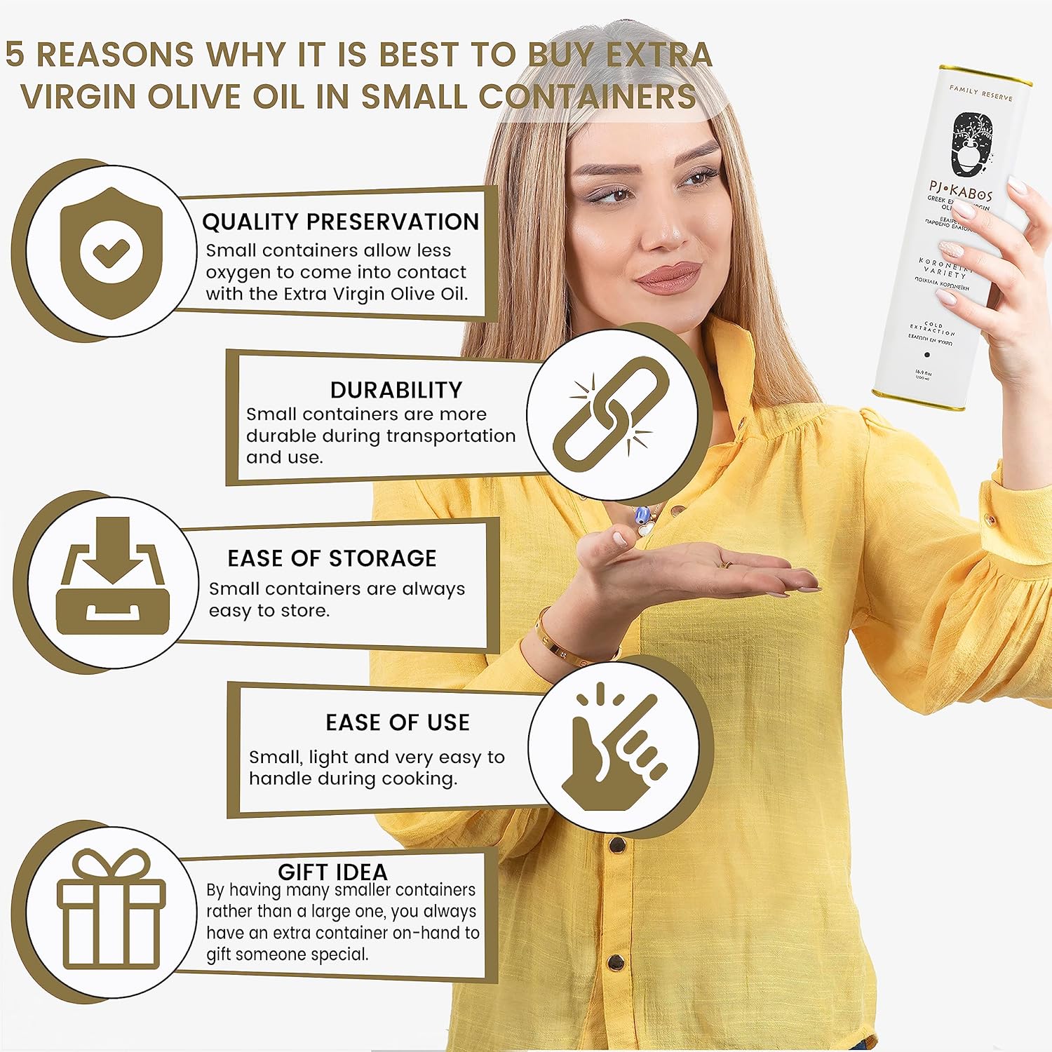 P.J. KABOS 2024/25 Harvest, High Phenolic (450+mg/kg), Premium Greek Extra Virgin Olive Oil, Kosher, Greece, Cold Extracted, 3 x 16.9 oz Tin, Koroneiki, "Family Reserve - Medium"