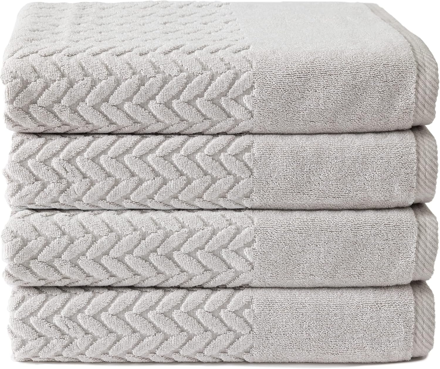 Texere 100% Organic Cotton Jacquard 650 GSM Premium Bath Towel Sets - Extra Absorbent Quick Dry and Plush (Cable, Light Taupe, 4 Bath Towels)