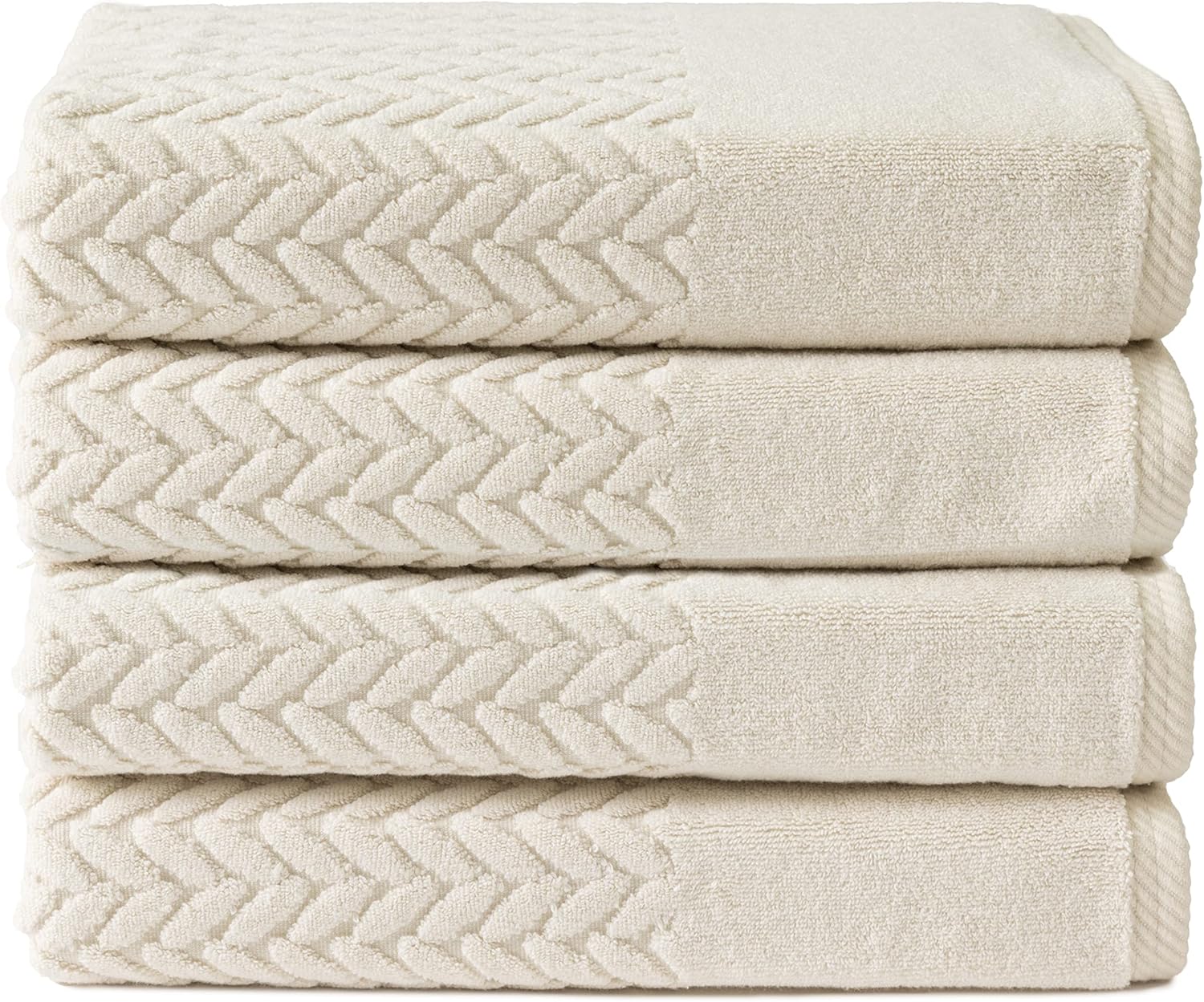 Texere 100% Organic Cotton Jacquard 650 GSM Premium Bath Towel Sets - Extra Absorbent Quick Dry and Plush (Cable, Birch, 4 Bath Towels)