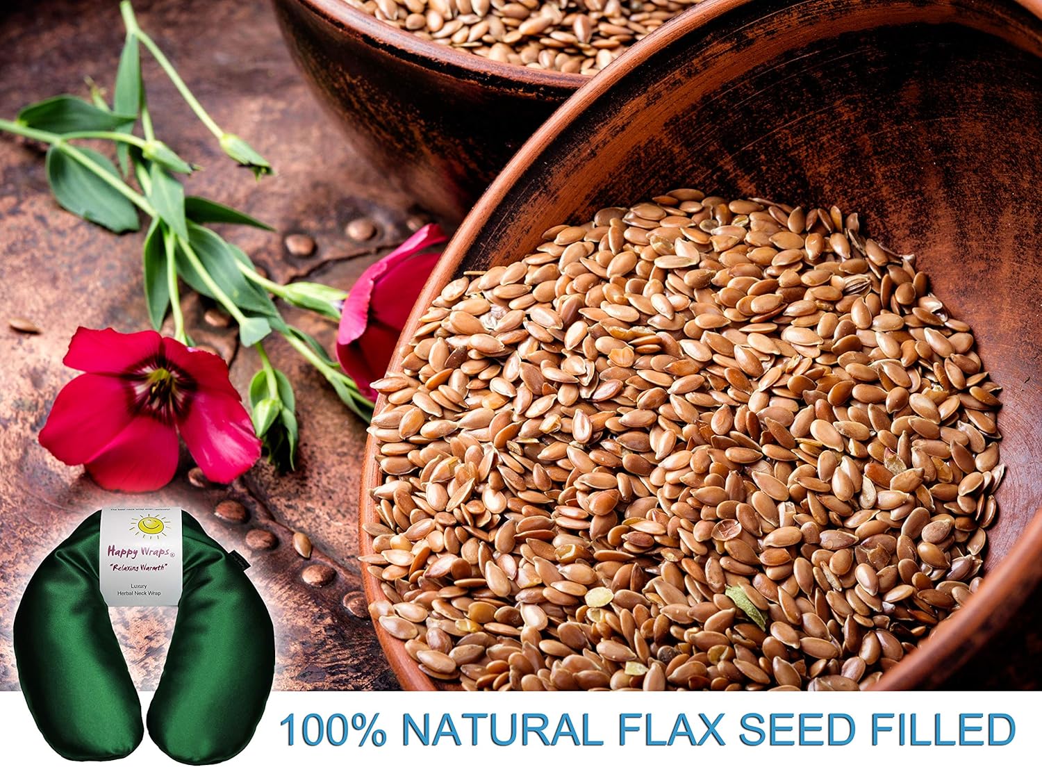 Microwavable Herbal Neck Wrap - Hot Cold Aromatherapy Neck Warming Pillow - Heating Pad for Migraines, Stress, Gifts for Women, Birthdays, Christmas and Free Sleep Mask - Jade Satin