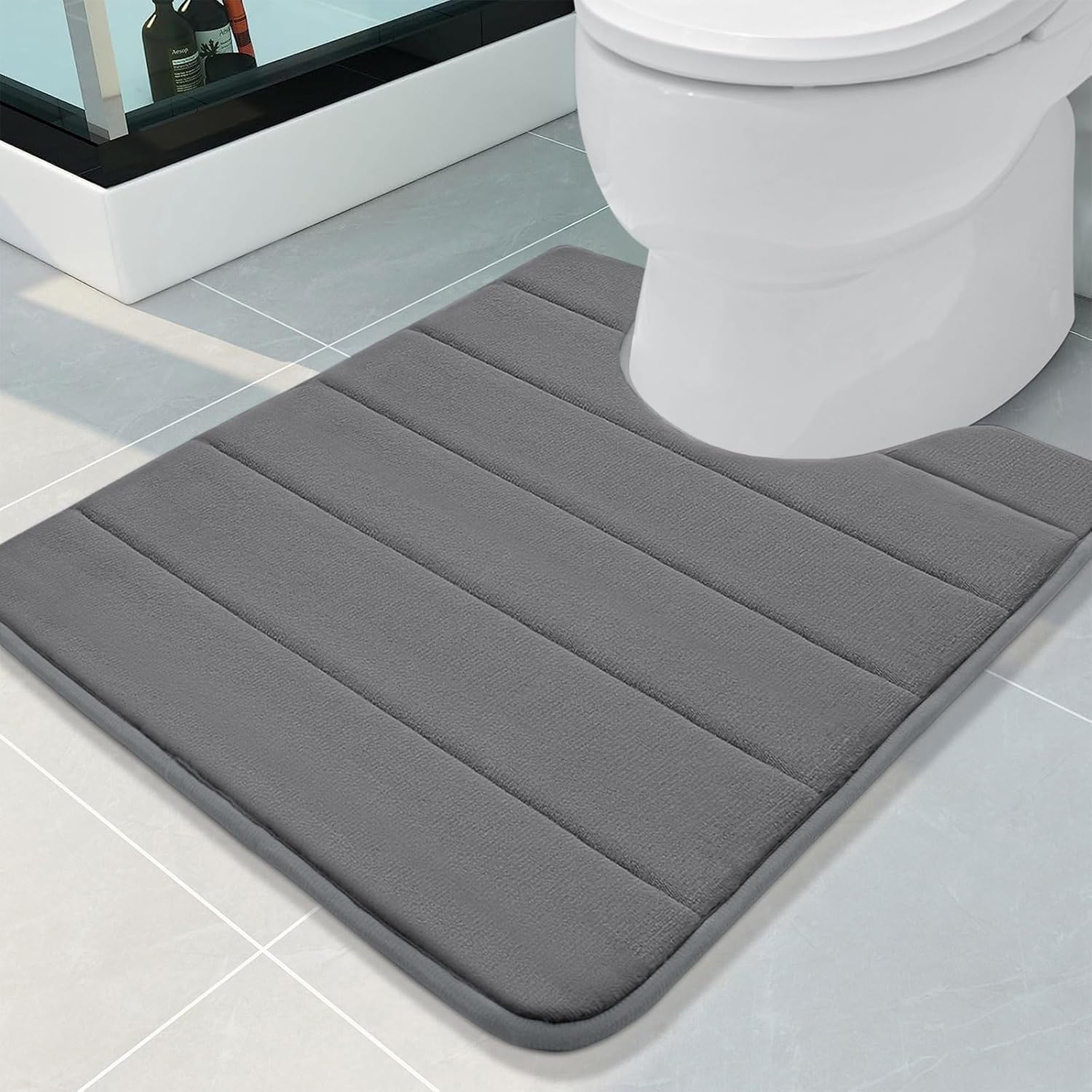 Buganda Memory Foam U-Shaped Contour Toilet Rugs, Non Slip Absorbent, Thick Soft Washable Bathroom Mat, Floor Carpet Bath Rugs Mat for Toilet Base (24" x 20", Grey)