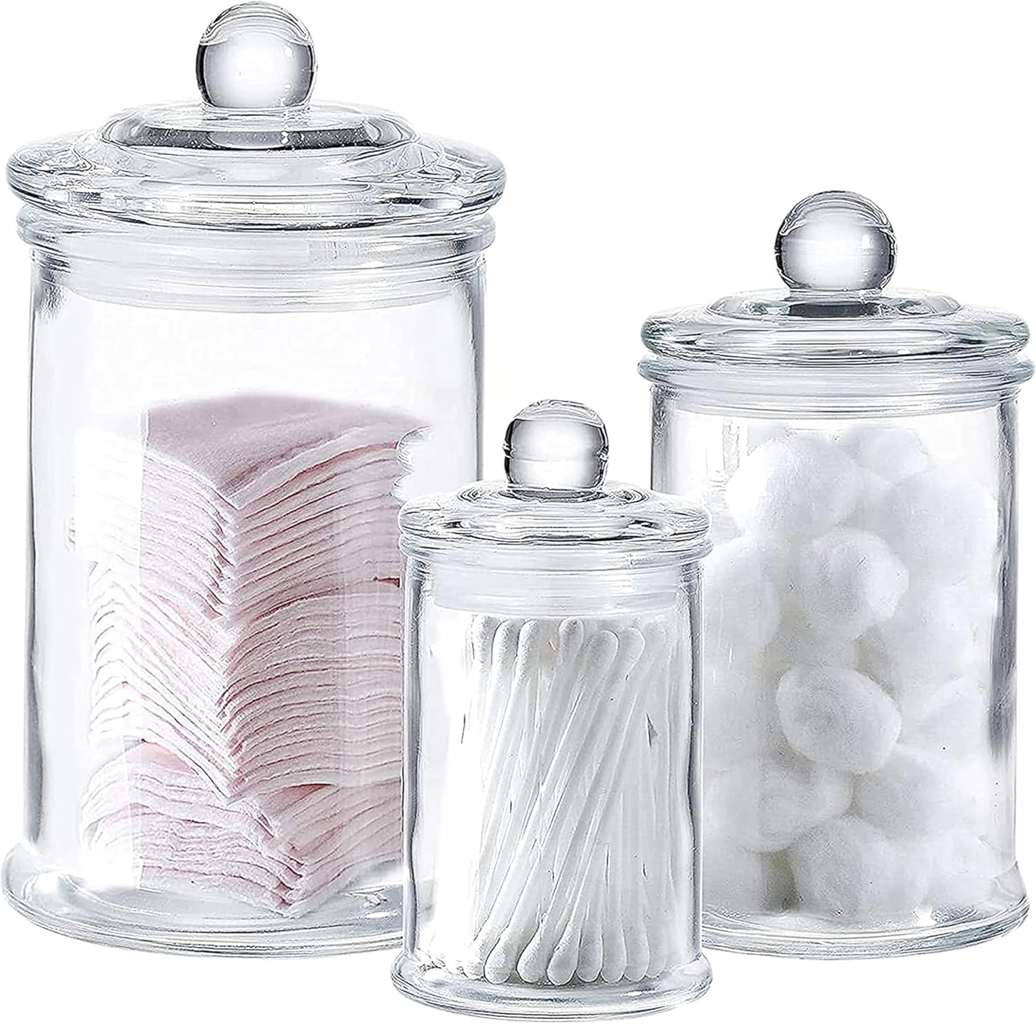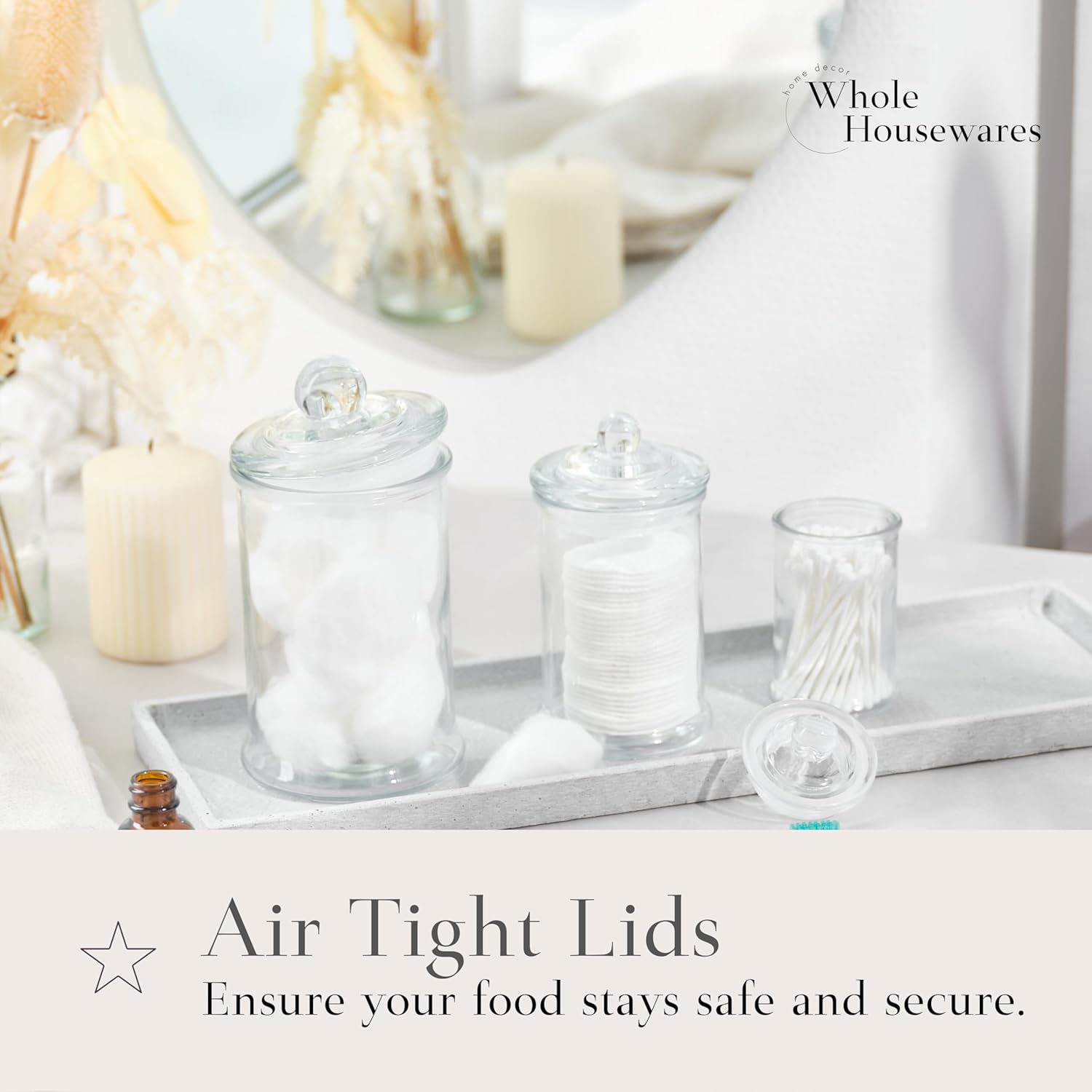 Whole Housewares - Set of 3 Bathroom Canisters - Storage Container Jars - Premium Glass Apothecary Jars with Lids - Small Glass Jar for Kitchen or Bathroom Storage - Decorative Crystal Containers