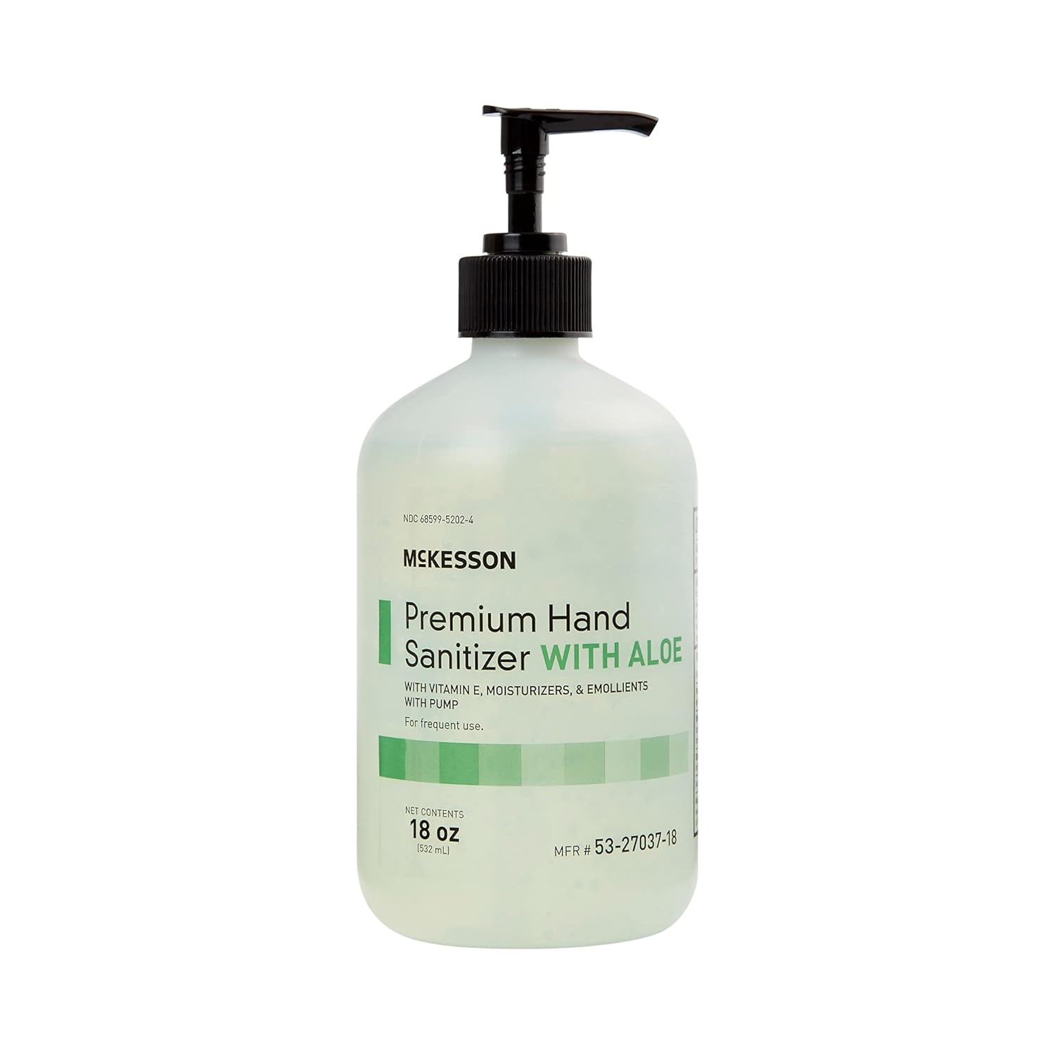 McKesson Hand Sanitizer with Aloe, 18 oz Pump Bottle [Pack of 5] - 70% Ethyl Alcohol, Spring Water Scent, No-Rinse Sanitizing Gel with Vitamin E and Moisturizers, Medical-Grade