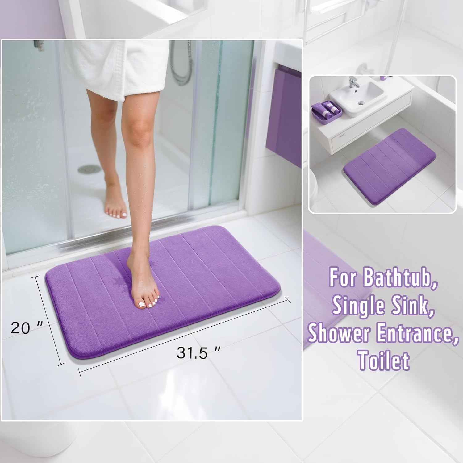 Yimobra Memory Foam Bath Mat, Super Soft Absorbent Bathroom Rug Non Slip 31.5x20 Inch, Quick Dry, Machine Washable Floor Carpet for Tub Shower, Home Decor Accessories, Lavender