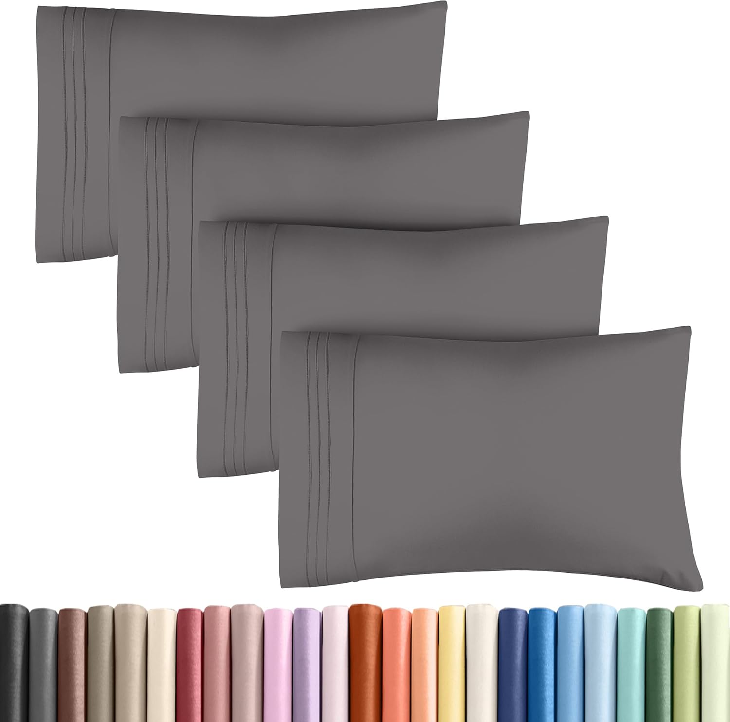 Queen Pillow Cases Set of 4 - Ultra Soft Hotel Quality Pillowcase Covers - Comfy, Cozy & Wrinkle Free - Shrinkage, Stain & Fade Resistant - Machine Washable Pillow Protectors - 4 Piece Set - Dark Grey