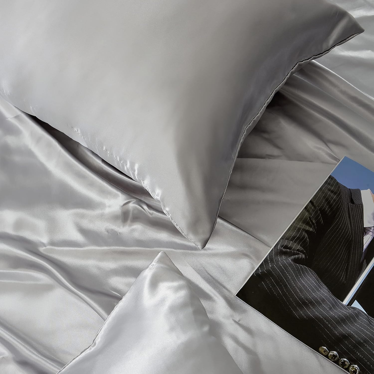 Juwenin Bedding,Luxury Satin Pillowcase with Zipper (Silky Satin Pillow Case for Hair) Set of 2 (Dark Grey, Queen(20''x29''))