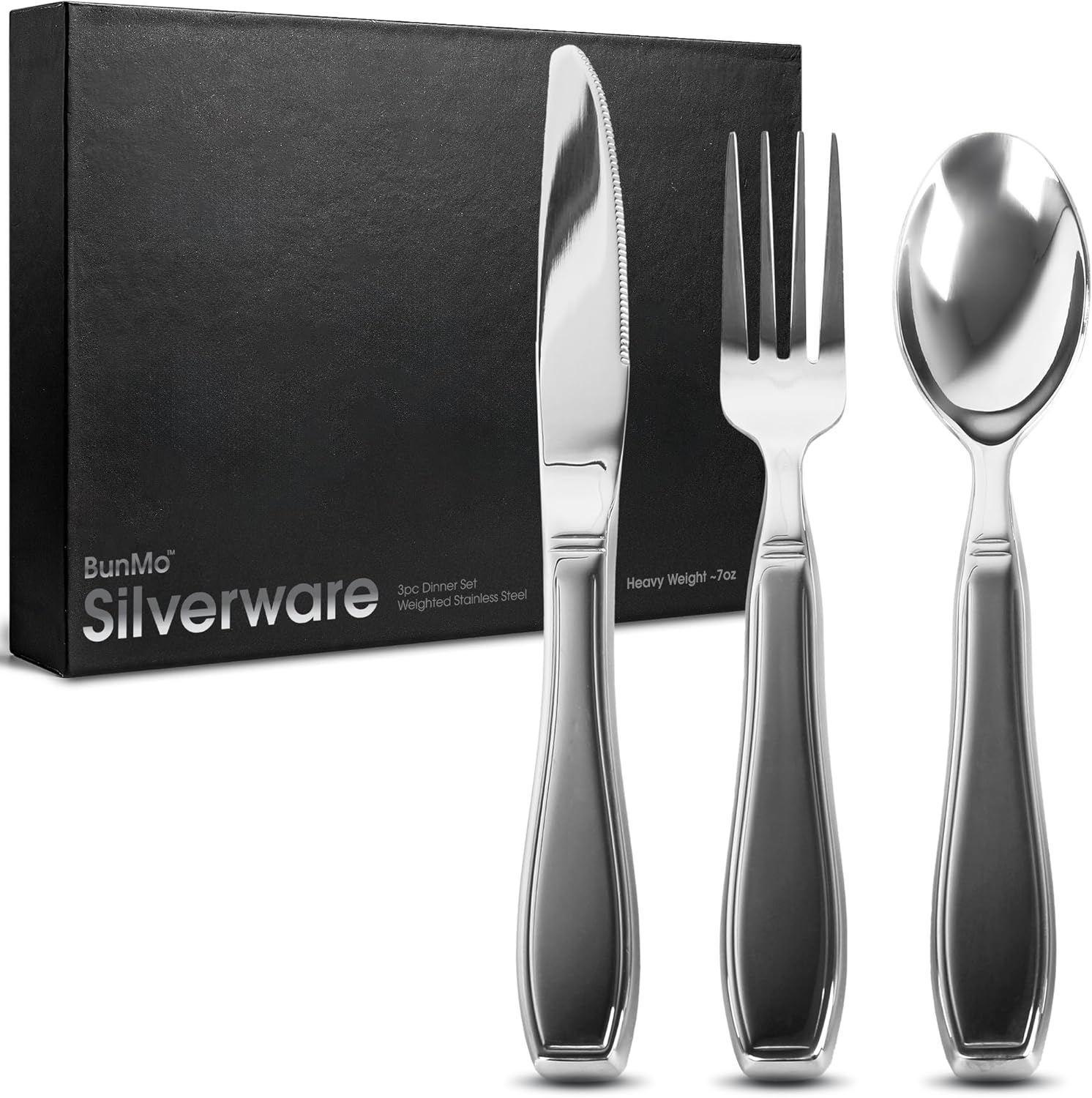 - Weighted silverware sets trusted by many: BunMo creates weighted utensils that everyone can continuously enjoy. Our weighted knife, fork, and spoon set are designed to withstand the trials of everyday life. If BunMo's weighted silverware set doesn't live up to your expectations, then we'll bend over backward to make sure you're a happy customer.