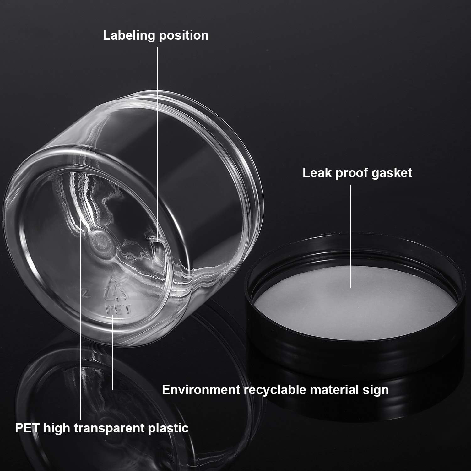 SATINIOR 12 Pack 6 oz Plastic Container Jars with Lids Round Clear Travel Cosmetic Container Slime Jars for Toiletries, Lotion, Cream, Ointments, Makeup, Rhinestone, Samples, Kitchen Storage(Black)