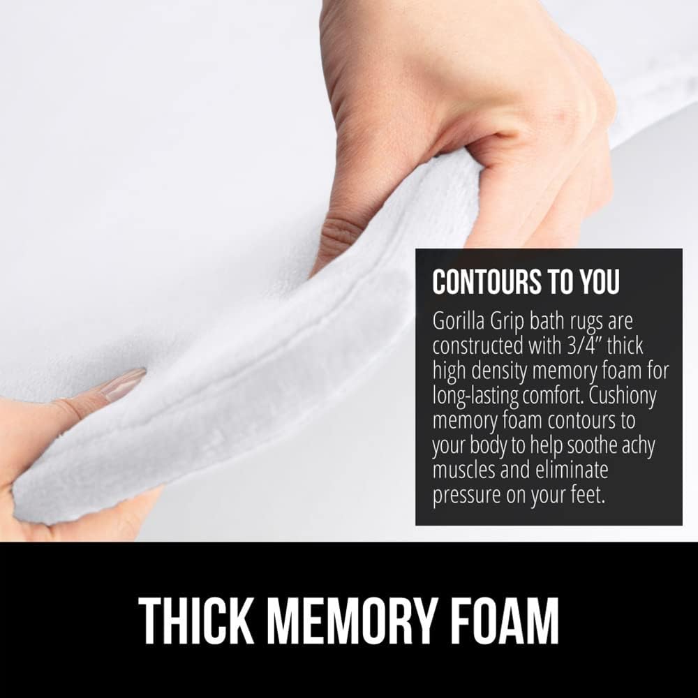 GORILLA GRIP Thick Memory Foam Bath Rugs, Soft Absorbent Velvet Bathroom Mats, Durable Dots on Underside, Machine Washable Bathmat, Carpet Rug Room Decor for Shower Floor, 30x20 Mat, White