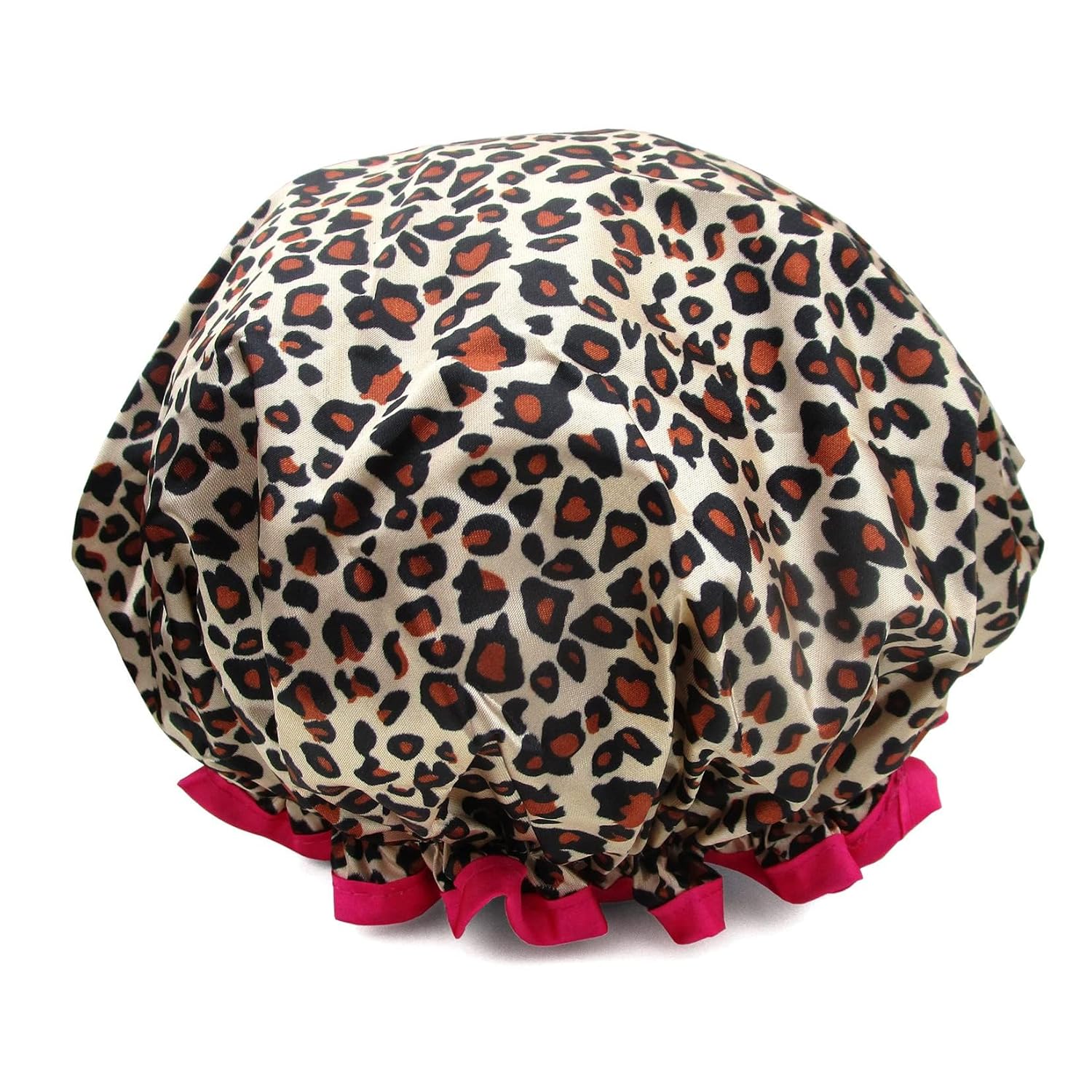 - Practical and Comfortable: Shower cap reusable,it's made of PEVA soft satin,comfortable touching feeling, double layers,waterproof, effectively keep your hair dry while you showering .