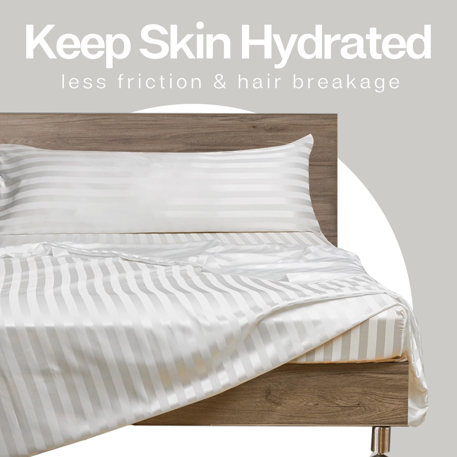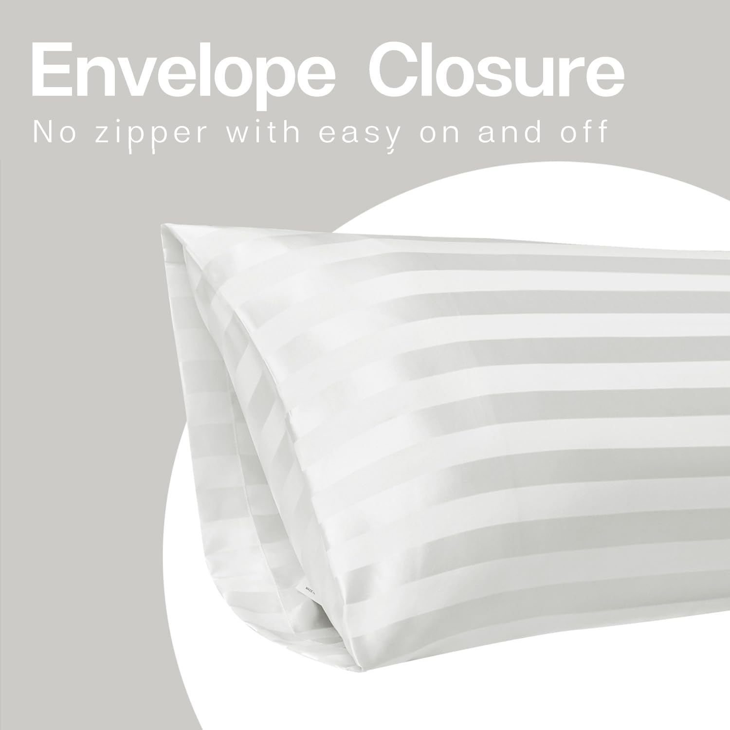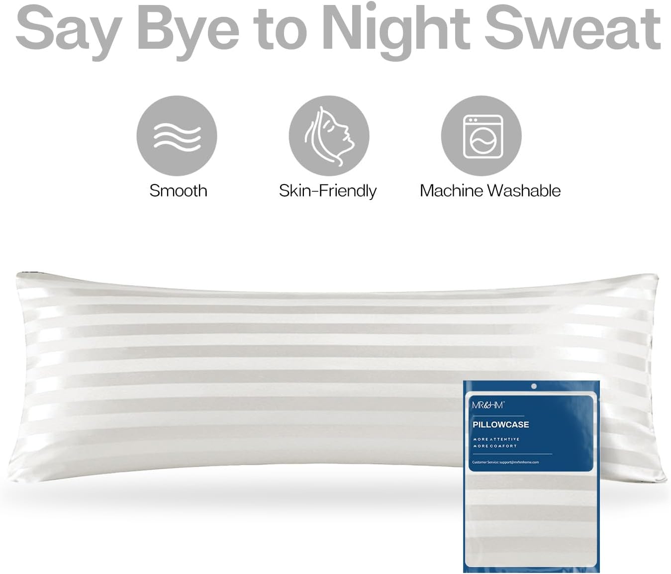 MR&HM Satin Body Pillow Cover, Soft and Breathable Body Pillow Case with Envelope Closure, Cooling and Silky Long Pillowcase for Hair and Skin,Grey (20x54, Ivory Striped)