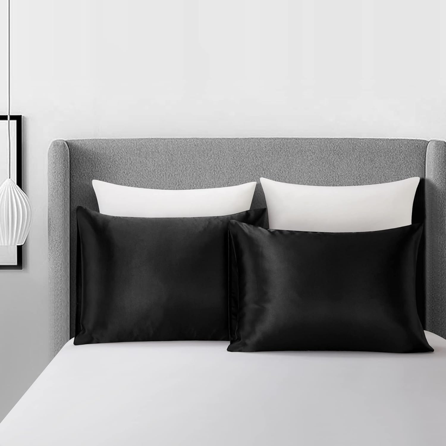 JUWENIN,Luxury Satin Pillowcase with Zipper (Silky Satin Pillow Case for Hair) Set of 2 (Standard, Black)