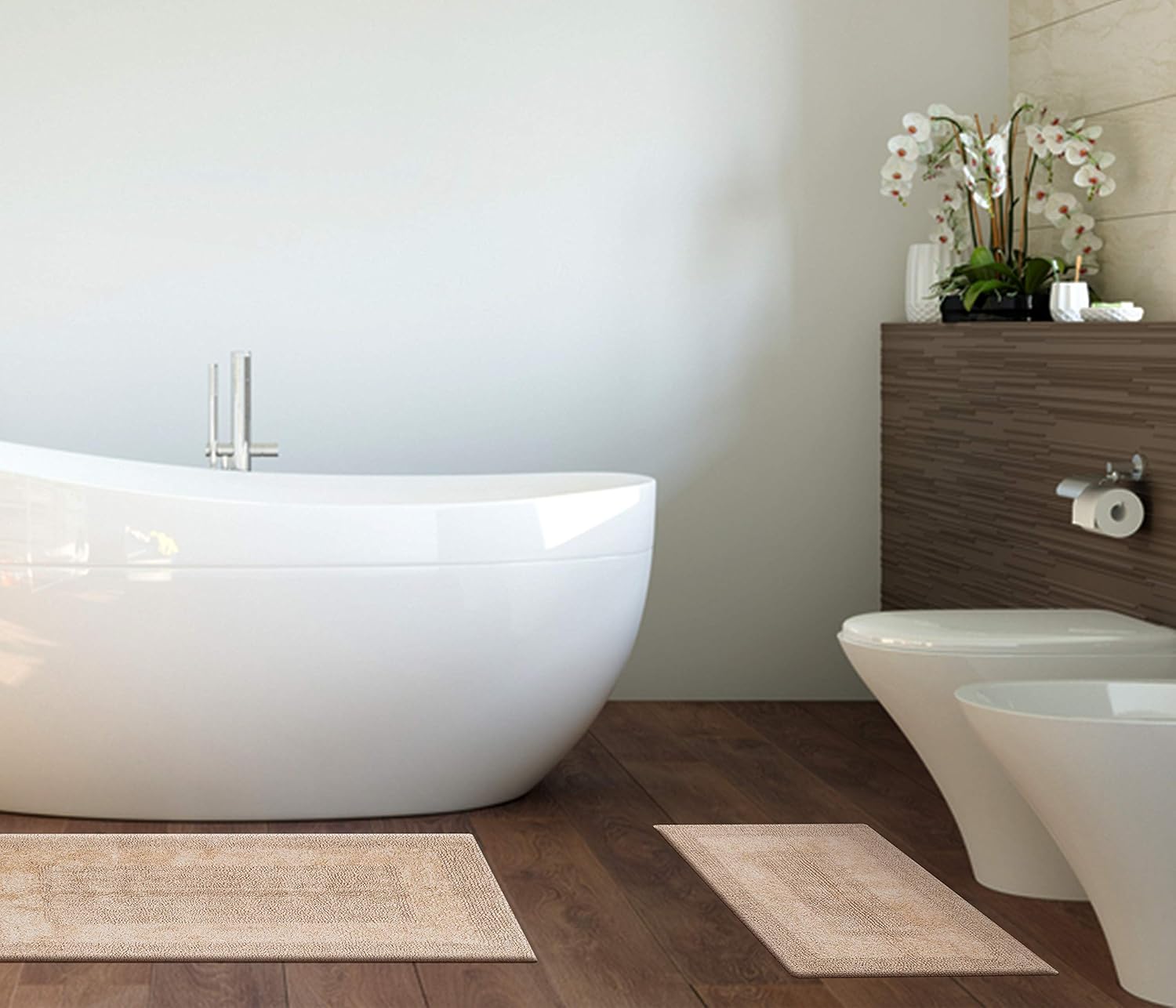 Bathroom Rugs Set 2 Piece Linen Beige Cotton Tufted Reversible Washable Bath Mats for Bathroom Floor| Quick Dry Bathroom Mat for Tub Spa Shower Toilet| Entry Way Door Mats|21x32 & 17x24 Inches