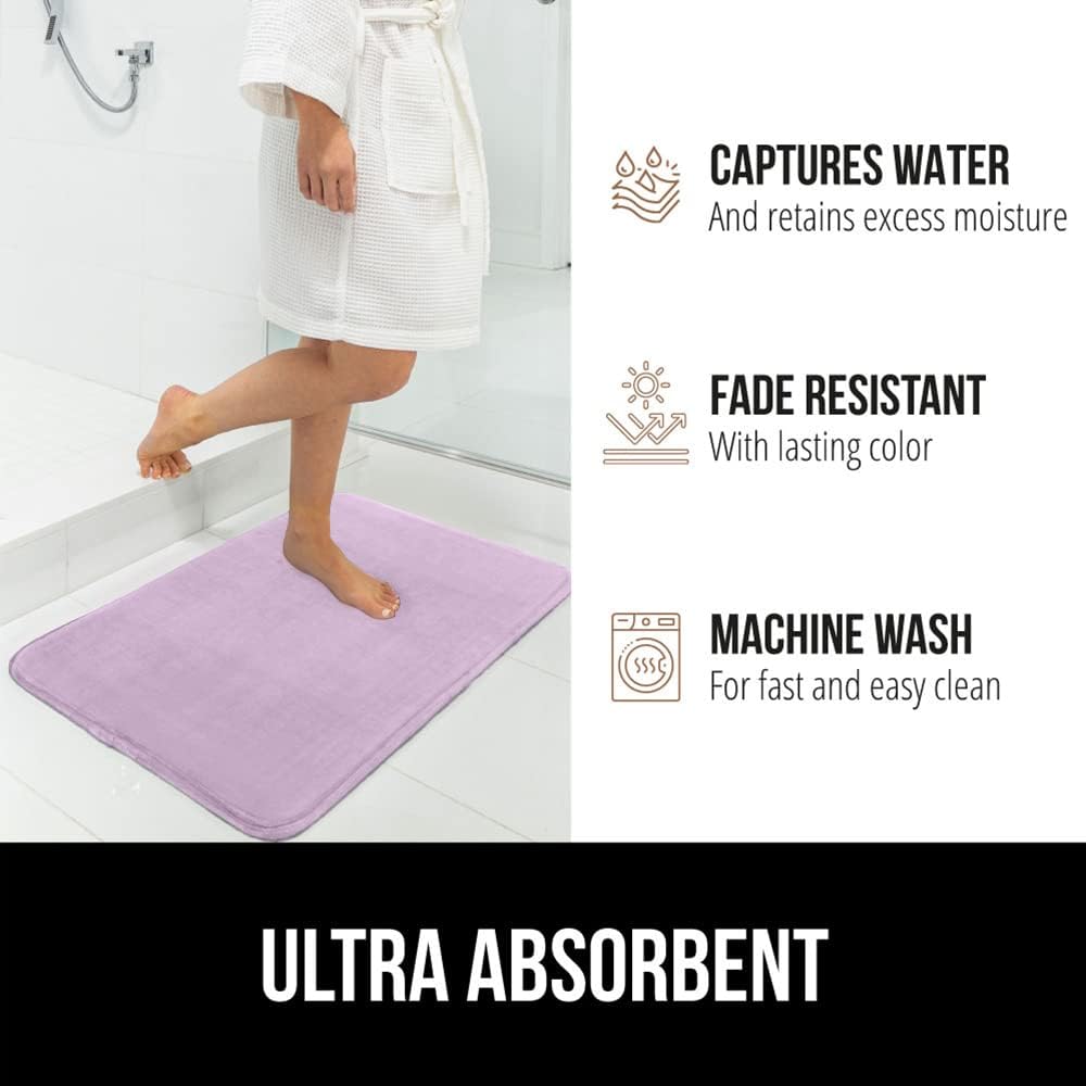 GORILLA GRIP Memory Foam Bath Mat, Soft Absorbent Velvet Bathroom Mats, Durable Dots on Underside, Machine Washable Bathmat, Carpet Rug Room Decor for Shower Tub Floor RV, 24x17 Rugs, Purple