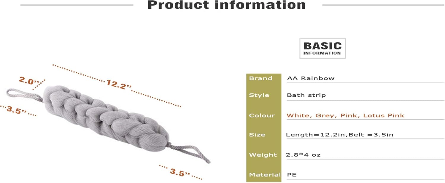 AARainbow 4 Packs Long Stretch Back Sponge with Rope Handles Back Scrubber Bath Shower Mesh Sponge Exfoliating Body Scrub Stretch Braided Loofah for Men and Women (2 Gray+2 Lotus Pink)