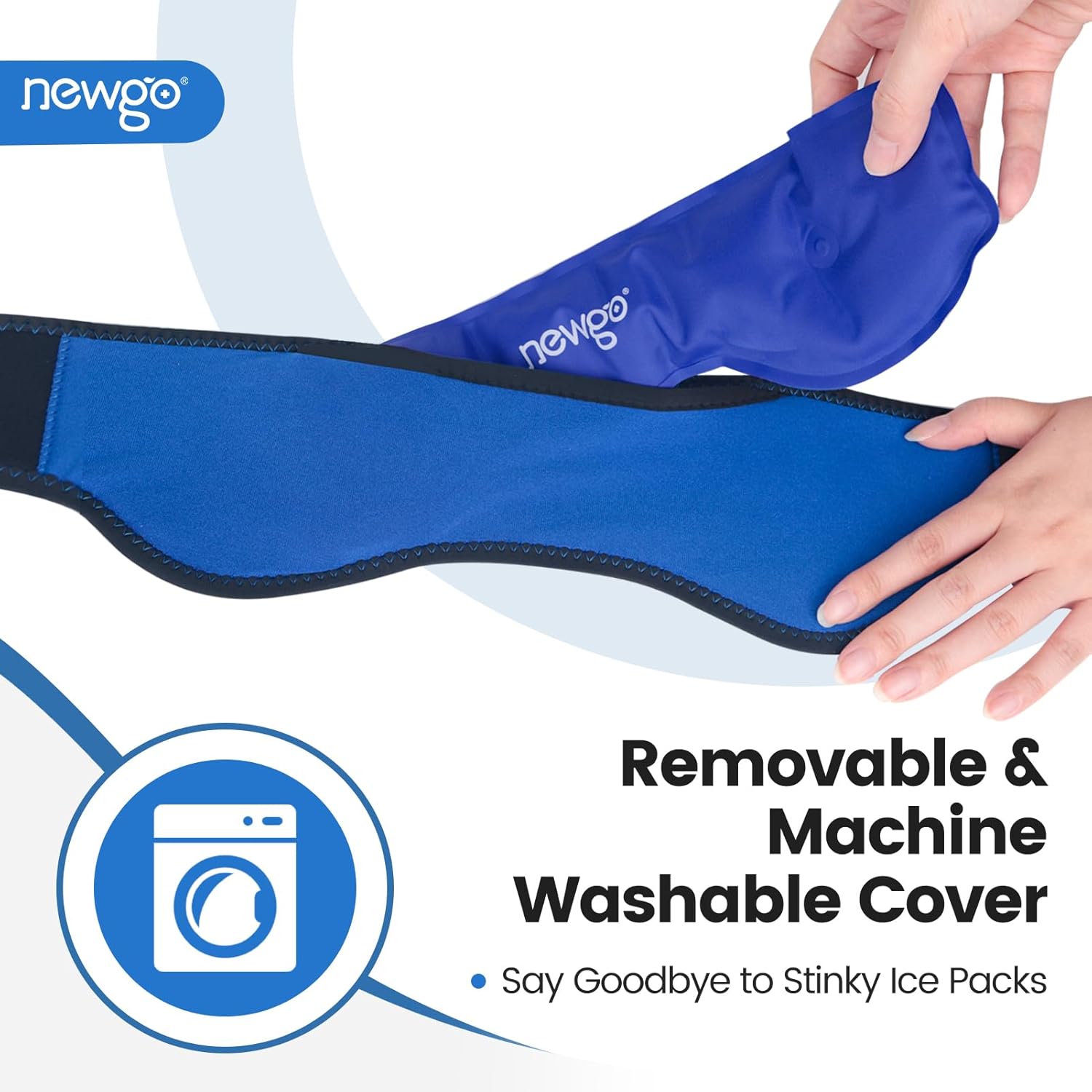 - Considerate Design - NEWGO Headache ice pack wrap is thoughtfully designed with stretchable neoprene fabric with removable gel pack, thanks to the unique style, fine detail, and craftsmanship, the head ice wrap provides long lasting comfotable wear and remain flexible even after frozen even at 0°F(-18℃).