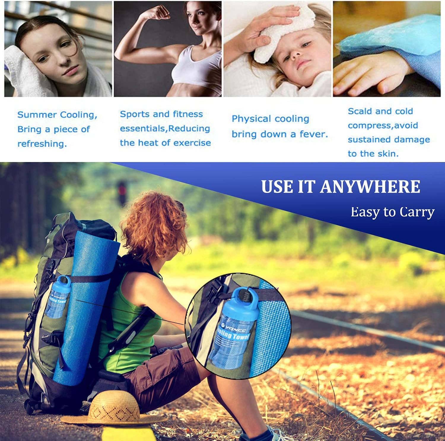 - Cooling Effect: To activate the cooling effect, just soak it with water, wring it out and shake it several times. It will chill you down instantly, and the cooling effect can last up to several hours. Reactivate it by repeating the same steps