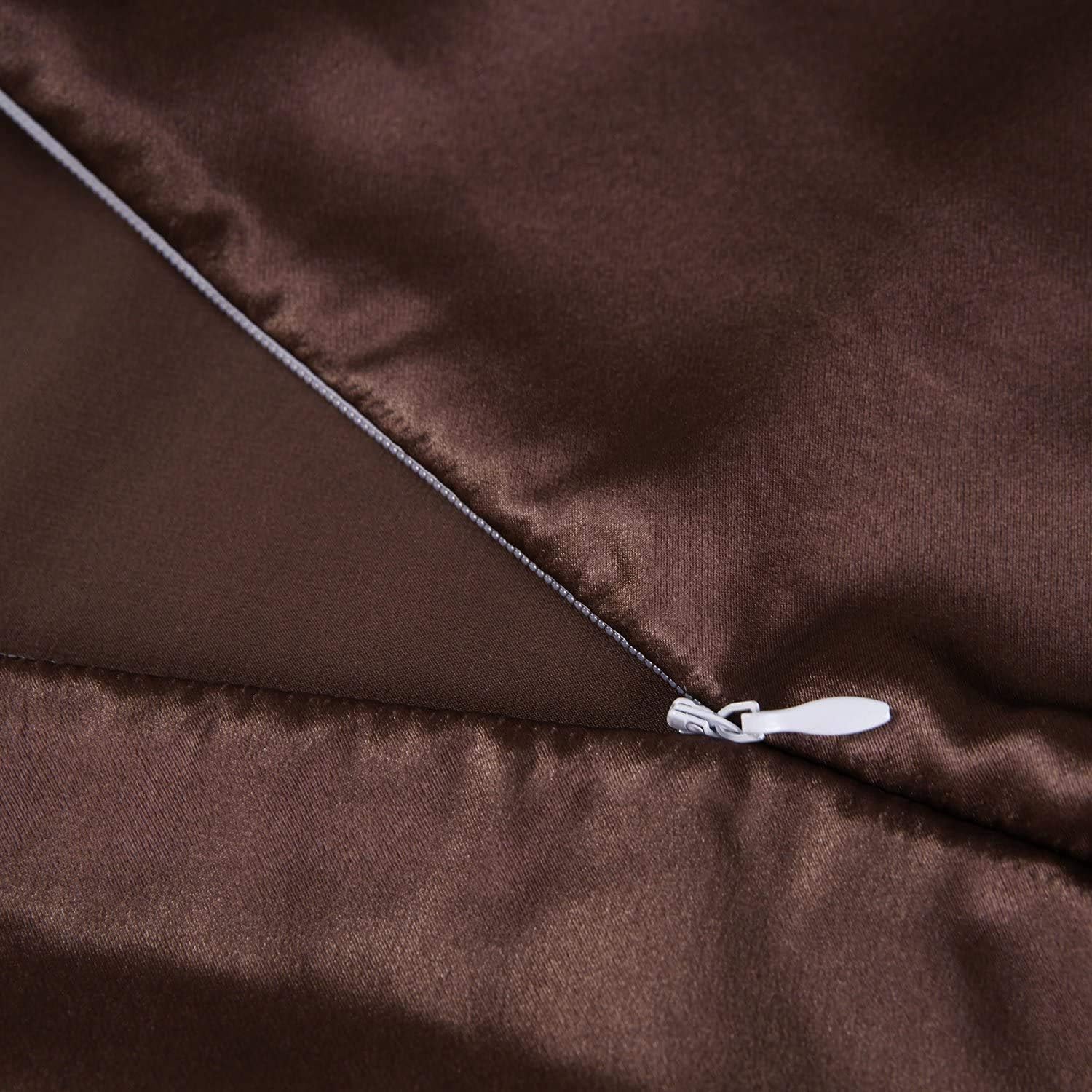 Juwenin Bedding,Super Soft and Luxury Silky Satin Pillowcase with Zipper (Silky Satin Pillow Case for Hair) Set of 2 (Coffee, Standard(20''x26''))