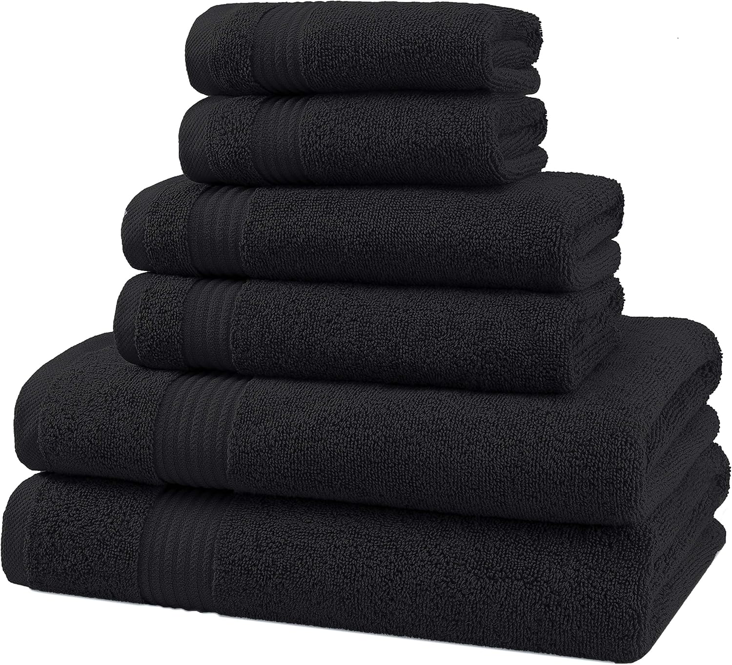 American Veteran Towel, 6 Piece Towel Set for Bathroom, 100% Cotton Turkish Bathroom Towels, 2 Bath Towels 2 Hand Towels 2 Washcloths, Black