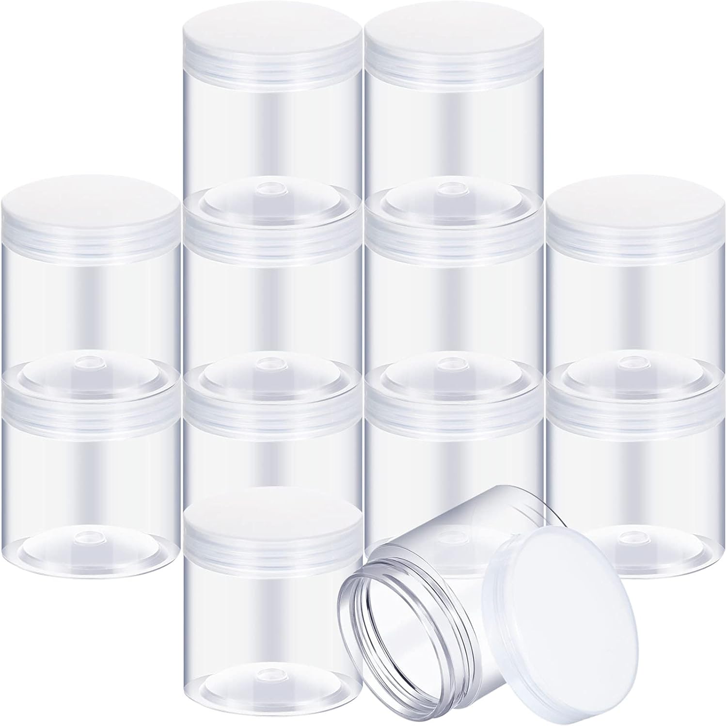 SATINIOR 12 Pack Plastic Container Jars with Lids Round Clear Travel Cosmetic Container Jars for Toiletries, Lotion, Cream, Ointments, Makeup, Rhinestone, Samples, Kitchen Storage (7 Ounce, Clear)