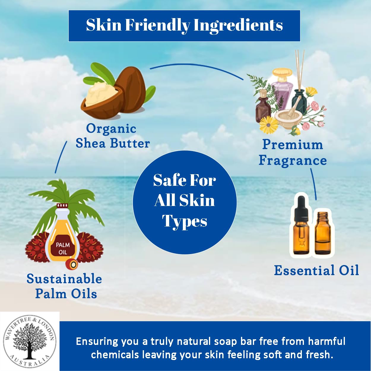 - 📋 Ingredients: Sustainable Palm oil, Palm Kernel Oil, Aqua (water), Certified Organic Shea Butter, Vegetable Glycerin, Essential Oils and/or Fragrance, Sodium Gluconate (natural sugar-based preservative), Sodium Chloride, Titanium Dioxide (food grade)