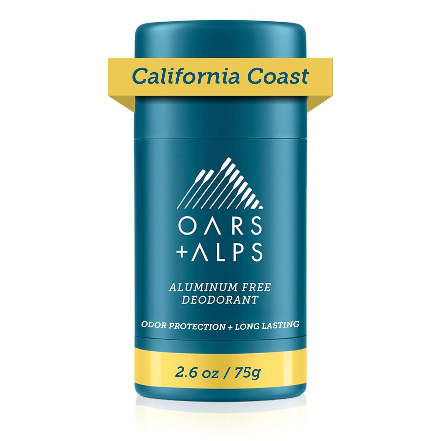 Oars + Alps Deodorant for Men & Women, Aluminum Free Deodorant for Men, Dermatologist Tested, Clean Ingredients, Non Toxic, Vegan, Long Lasting, Odor Protection, California Coast, 1pk, 2.6oz