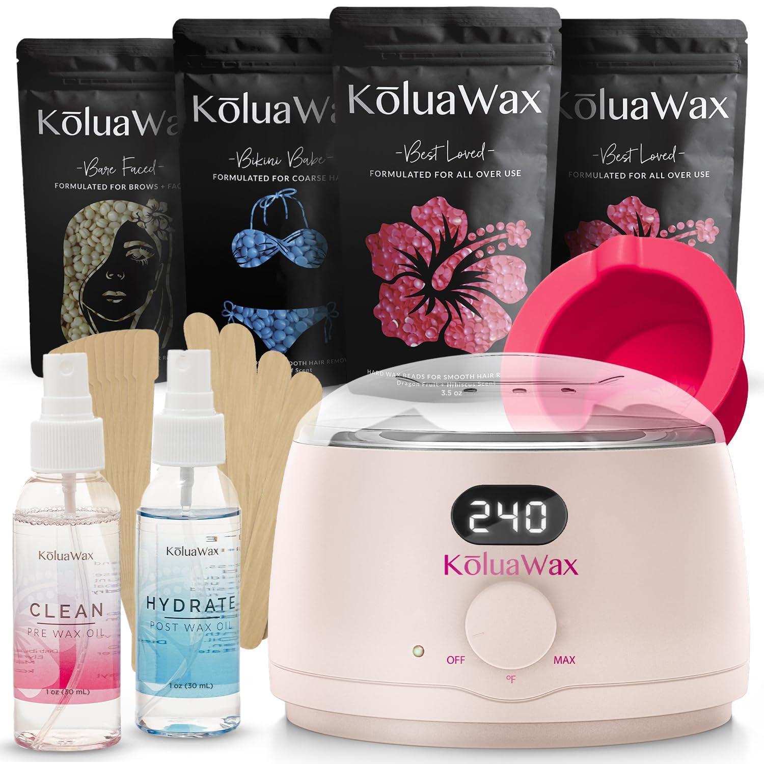 - INCLUDES: Premium Digital Wax Warmer + Removable Silicone Bowl + 4 Bags of Hard Wax Beads + Pre-Wax Oil + Post-Wax Oil + 20 Large Applicator Sticks + 20 Mini Brow Sticks + How to Guide